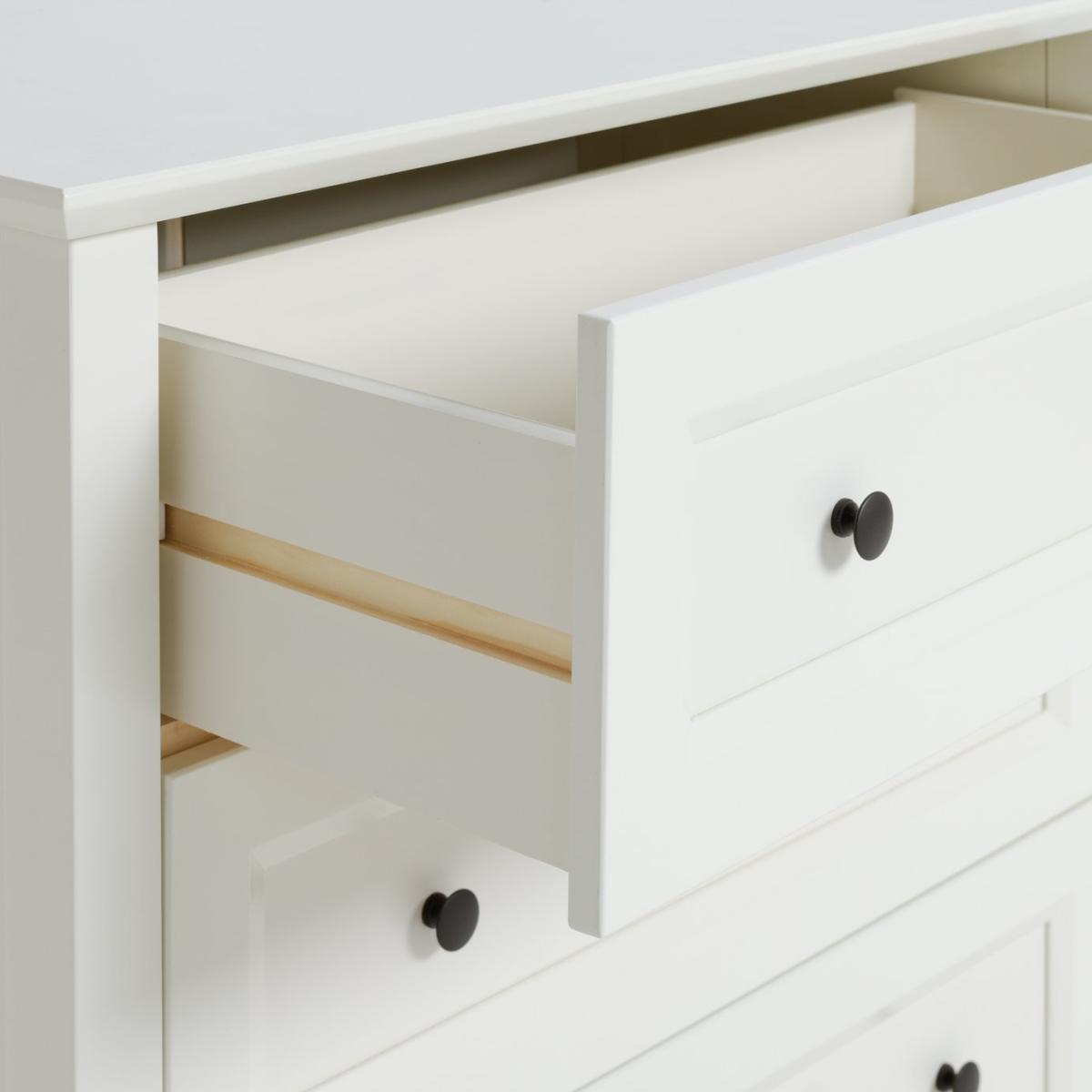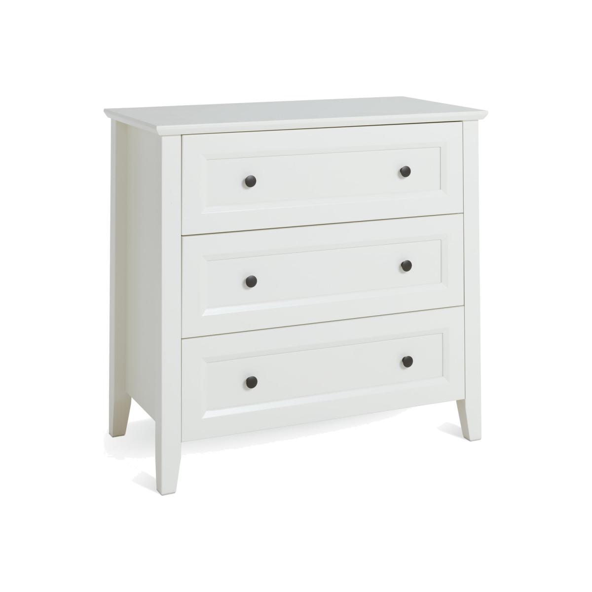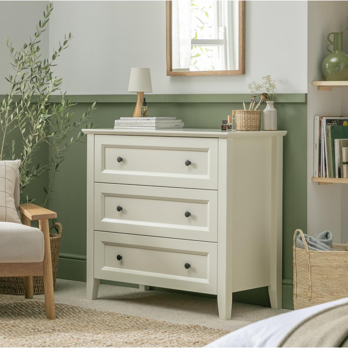 Keep in touch with Kingham, our pine chest of drawers that's designed to please. There's plenty of space for foldables in 3 deep drawers. And all glide smoothly on metal runners. With an ivory painted finish, panelled front and traditional round metal handles, Kingham is very country modern, cool. Make your own style station by dressing the top with a mirror and a lamp. Get curated with Kingham and take the look to the max. Part of the Kingham collection. Made of MDF and solid wood. Metal handles. Additional handles not included. 3 drawers with wooden runners. Packed flat - 2 people recommended (includes wall fixings). If this product is over 60cm high it must be securely attached to the wall to prevent overturning. Dimensions: Size H88.5, W95, D48.5cm. Internal drawer H15, W76, D33cm. Handle size: L2, W3cm. Weight 45kg. Package Dimensions: Package 1 dimensions: H25.5, W101, D58,. Package 1 weight: 48kg. FSC certified meaning the materials used for this product are responsibly sourced. General information: We are excited to be welcoming some of our favourite HOME products into the Habitat range. Your product may arrive in Habitat or HOME packaging. Manufacturer's 1 year guarantee.