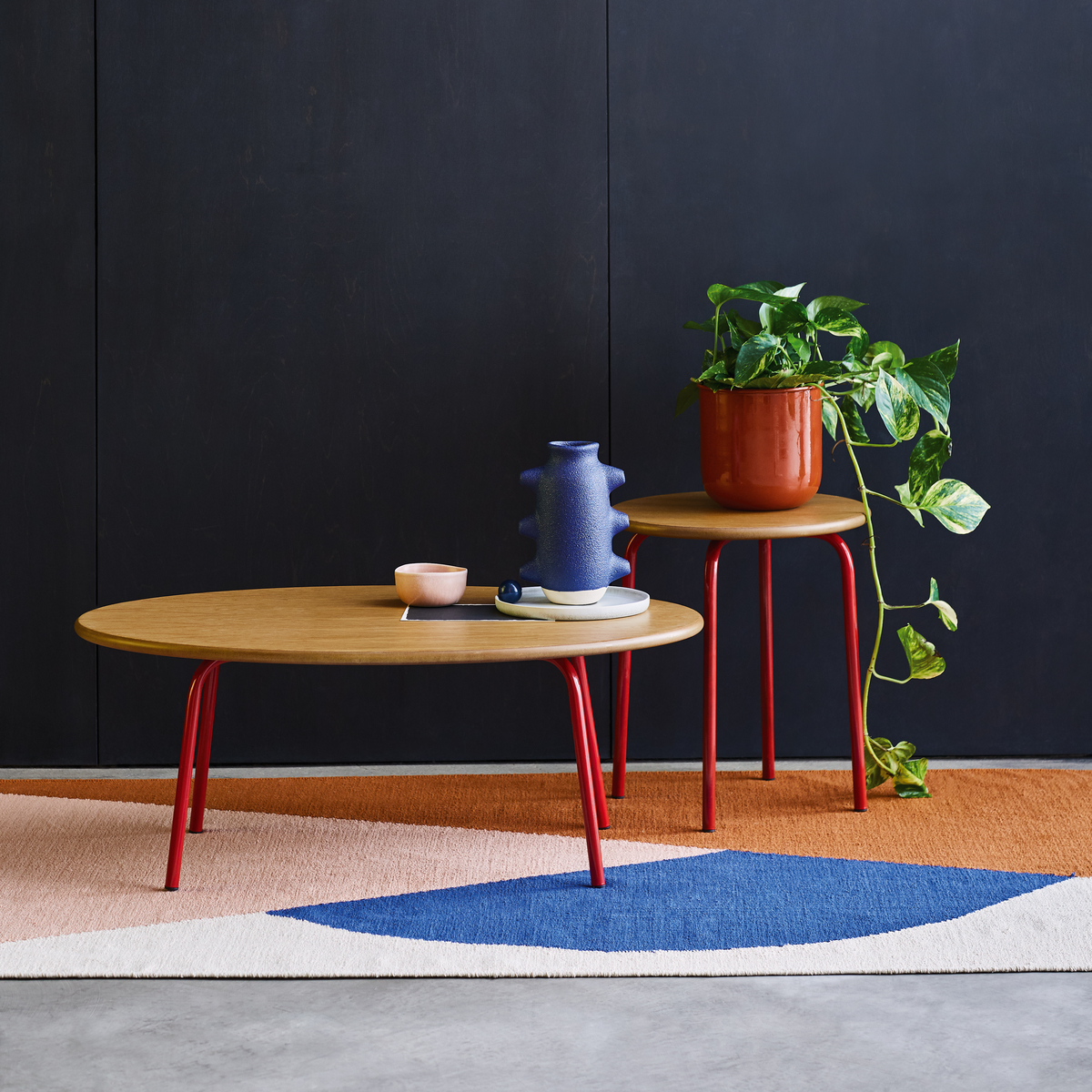 The Kirby oak veneer and red gloss coffee table was created in the Habitat design studio with a subtle nod to the 80s. This oak veneer table is finished with contrasting red gloss powder coated legs to add a contemporary twist to an otherwise classic design, as well as bringing a touch of Habitat personality into your home. Great for smaller spaces, its slim legs give it a lightweight look. Part of the Kirby range, a matching side table is available alongside a TV stand, dining table and chairs.