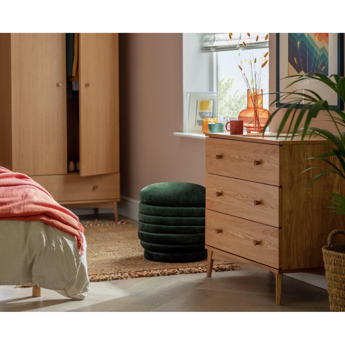 Solid option. Our Kirk 3 drawer oak chest is naturally accommodating. With easy runners, just roll out the storage space and fill. And what a looker. An attractive natural grain and splayed leg frame makes it a cut above average. We're impressed. Perhaps today's choice will be tomorrow's classic. Made to last, this wooden chest of drawers features a raw and natural finish, timeless in its presentation. Deep drawers can take jumpers to track suits, linens to PJs. Need more space? Get two, they look great as a pair. Part of the Kirk collection. Made of oak and oak veneer. Wooden handles. 3 drawers with metal runners. Self-assembly - 2 people recommended (includes wall fixings). If this product is over 60cm high it must be securely attached to the wall to prevent overturning. Dimensions: Size H75.5, W80, D40cm. Internal drawer H13, W71.2, D33cm. Handle size: L2.5, W2.5cm. Weight 41kg. Package Dimensions: Package 1 dimensions: H25, W88, D48,. Package 1 weight: 28kg. Package 2 dimensions: H10, W65, D45cm. Package 2 weight: 17.5kg. FSC certified meaning the materials used for this product are responsibly sourced. General information: We are excited to be welcoming some of our favourite HOME products into the Habitat range. Your product may arrive in Habitat or HOME packaging. Manufacturer's 1 year guarantee.