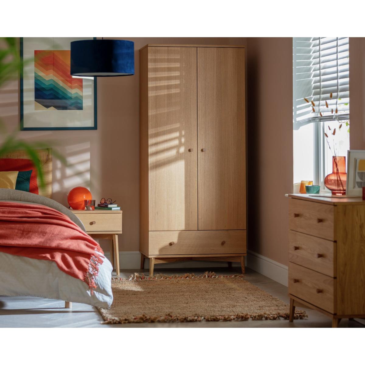 I love this three-piece wardrobe set for its clean, natural oak finish, which enhances both contemporary and Scandi-inspired interiors. It works particularly well in minimalist, neutral-toned bedrooms, adding warmth without overpowering the space. For styling, I recommend pairing it with simple, clutter-free decor and natural fibres to emphasise its organic tone. Practical tips include using the taller wardrobe for hanging clothes and the smaller pieces as versatile storage or bedside options. Its understated design makes it adaptable, allowing you to introduce colourful accents through bedding or accessories without clashing. Overall, it’s a functional and stylish choice for creating a calm, organised bedroom environment.