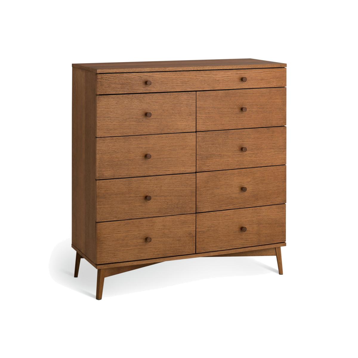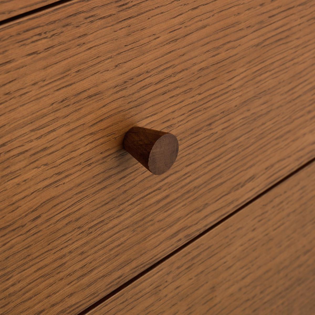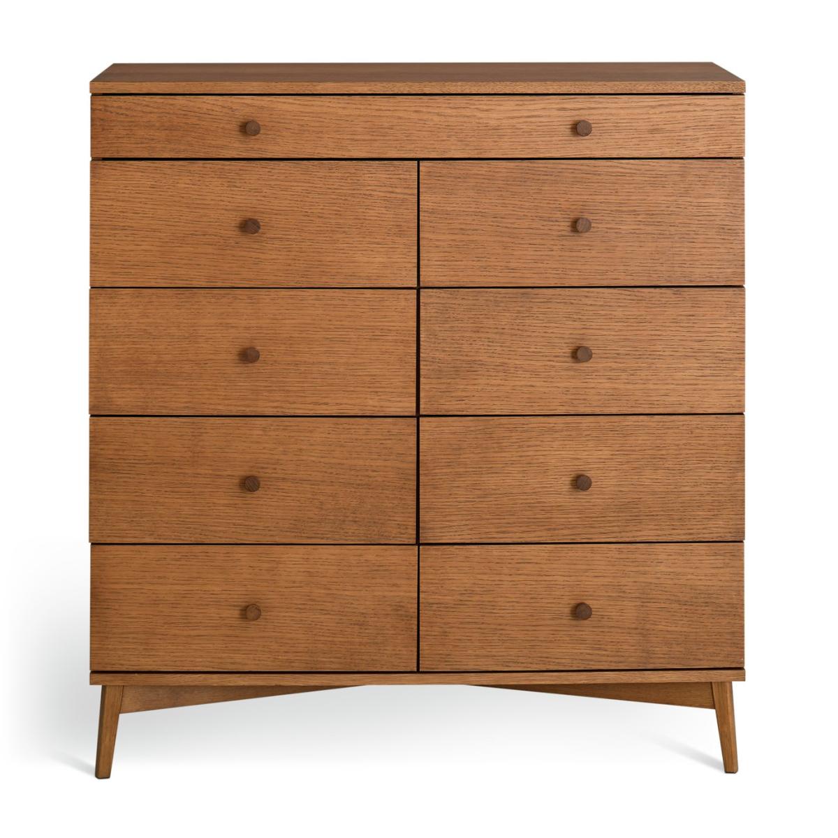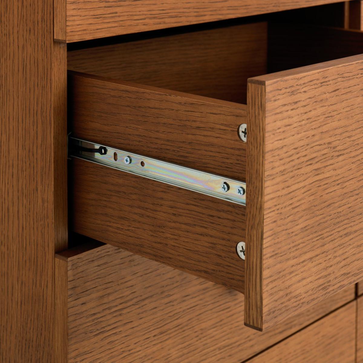 A decluttering delight. Our Kirk 9 drawer cabinet makes it so easy to tidy up and tuck everything away. Crafted with a warm walnut veneer and round wooden handles to add a classic touch. Stands firm on splayed legs that elevate the look and bring an air of spaciousness. Set on metal runners, each of the drawers glides open to reveal plenty of room for clothes, accessories and linen. A handsome addition to your bedroom, looks good in your lounge too. Part of the Kirk collection. Made of wood and MDF. Wooden handles. 9 drawers with metal runners. Soft close. Packed flat - 2 people recommended (includes wall fixings). If this product is over 60cm high it must be securely attached to the wall to prevent overturning. Dimensions: Size H106.5, W100, D42.35cm. D33.2 cm. Large internal drawer H7.4, W91.2, D33.2cm. Handle size: L2.5, W2.5cm. Weight 64kg. Package Dimensions: Package 1 dimensions: H24.5, W110.5, D48cm. Package 1 weight: 18kg. Package 2 dimensions: H111, W58,. General information: By choosing FSC certified products, you are supporting responsible management of the world's forests. Manufacturer's 1 year guarantee.