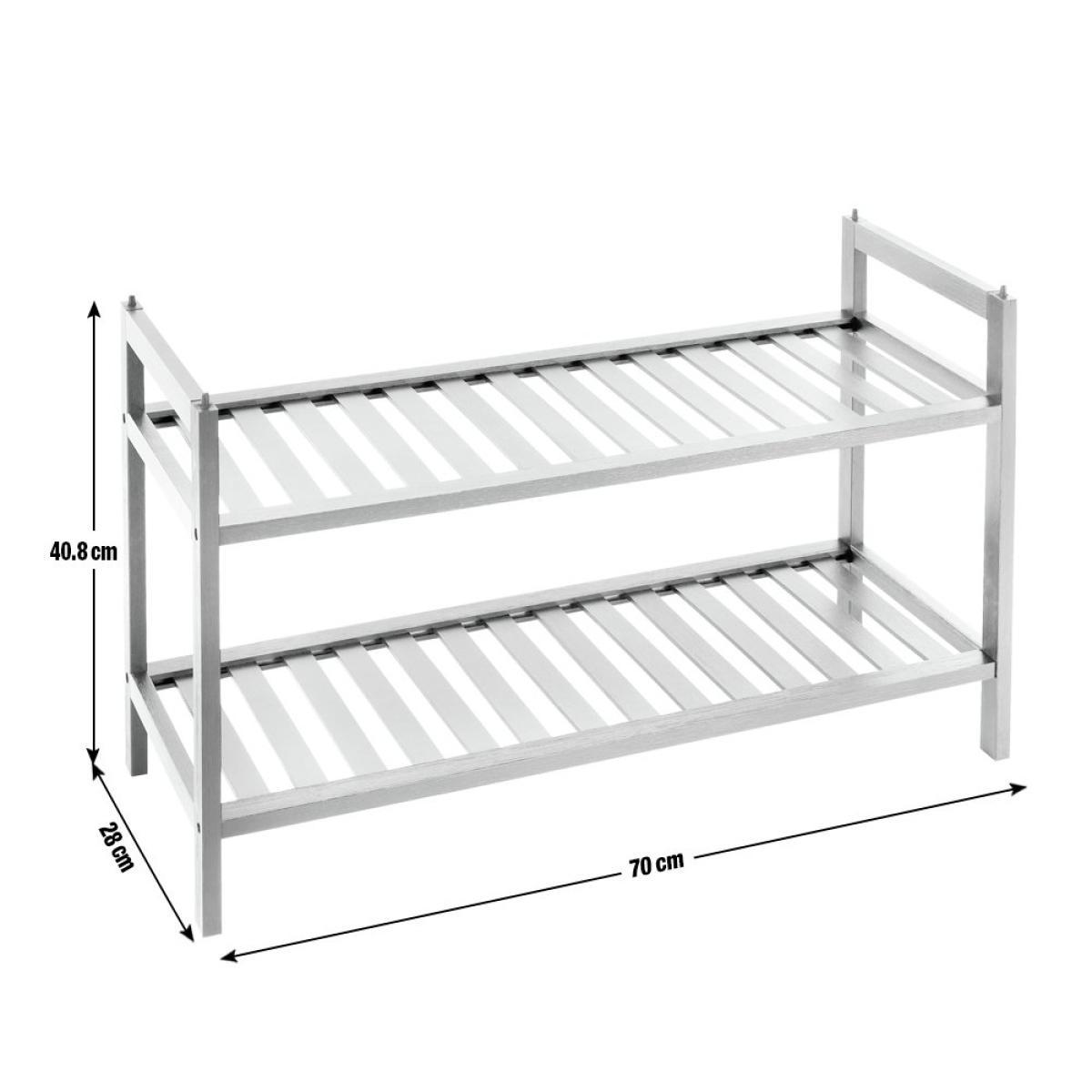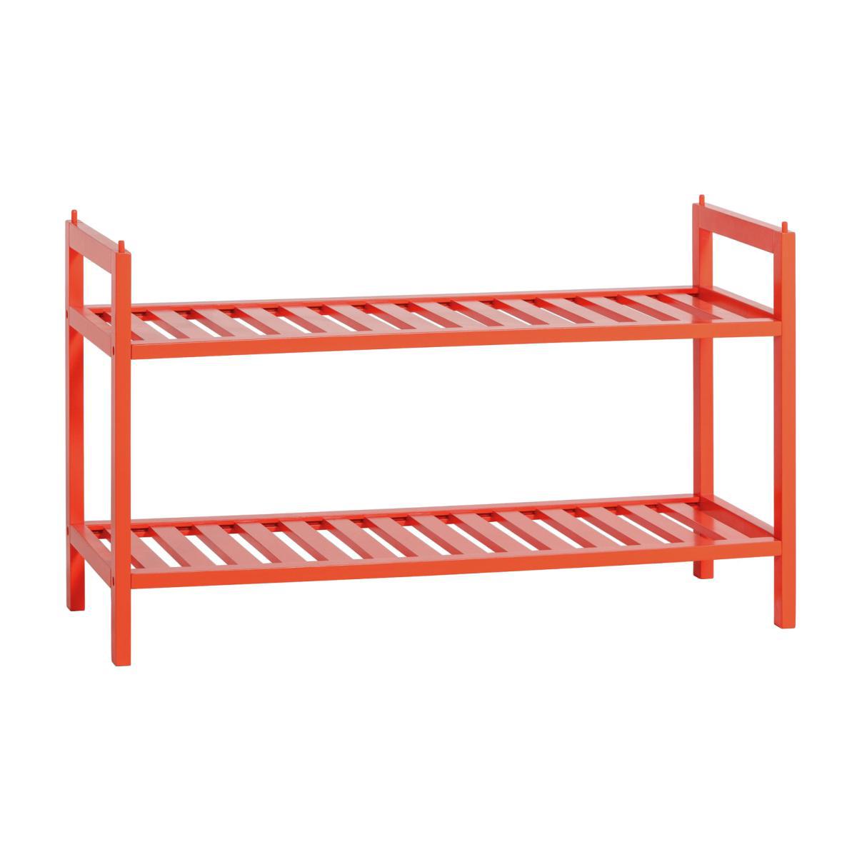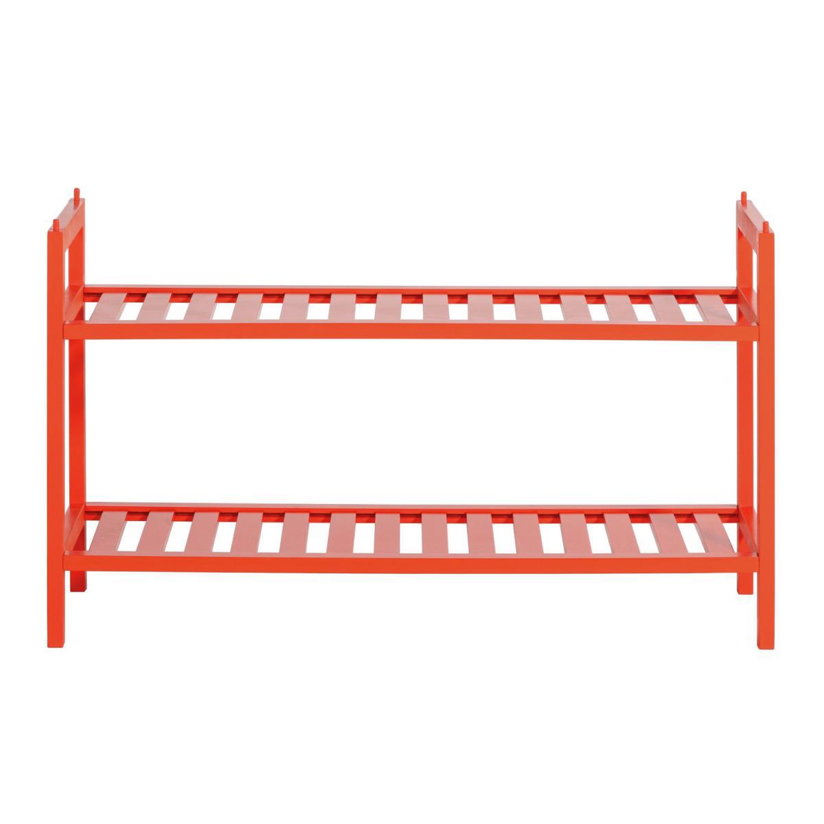 Store your shoes in style. The Habitat bamboo orange shoe rack is perfect for storing everything from boots to trainers to heels. If your shoe collection is vast, why not invest in more than one? Its clever design allows it to be stacked on top of one another. A space-saver's dream. Mix and match with the other colours available for a quirkier look. Rack 'em up. Part of the Kitt collection. Made from bamboo. Stores an average of 6 pairs of shoes. Up to maximum shoe size 11. 2 fixed shelves. Size H40.8, W70, D28cm. Weight 2.5kg. Self-assembly.