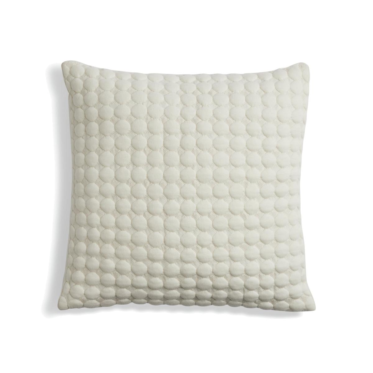 How homely. Cozy up with our white knitted cushion all evening long. Perfect to create that warm feel. Cover 45% Cotton, 55% Recycled Polyester. Filling 100% Recycled Polyester. Size L43, W43cm.
