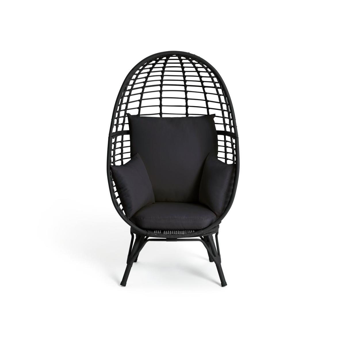 I love the habitat Kora egg chair for its bold, sculptural design that instantly elevates outdoor spaces. Its black finish provides a versatile base that pairs especially well with both minimalist and boho styles, adding a contemporary edge to gardens, patios, or even spacious conservatories. Practical styling tips include layering it with textured cushions or throws for increased comfort and visual appeal, or pairing it with greenery and lanterns for a relaxed yet chic outdoor lounge. Its unique shape makes it a statement piece, so it works best when complemented by simpler surrounding furniture to avoid clutter. Overall, this chair is a stylish and functional addition that invites cosy outdoor lounging.