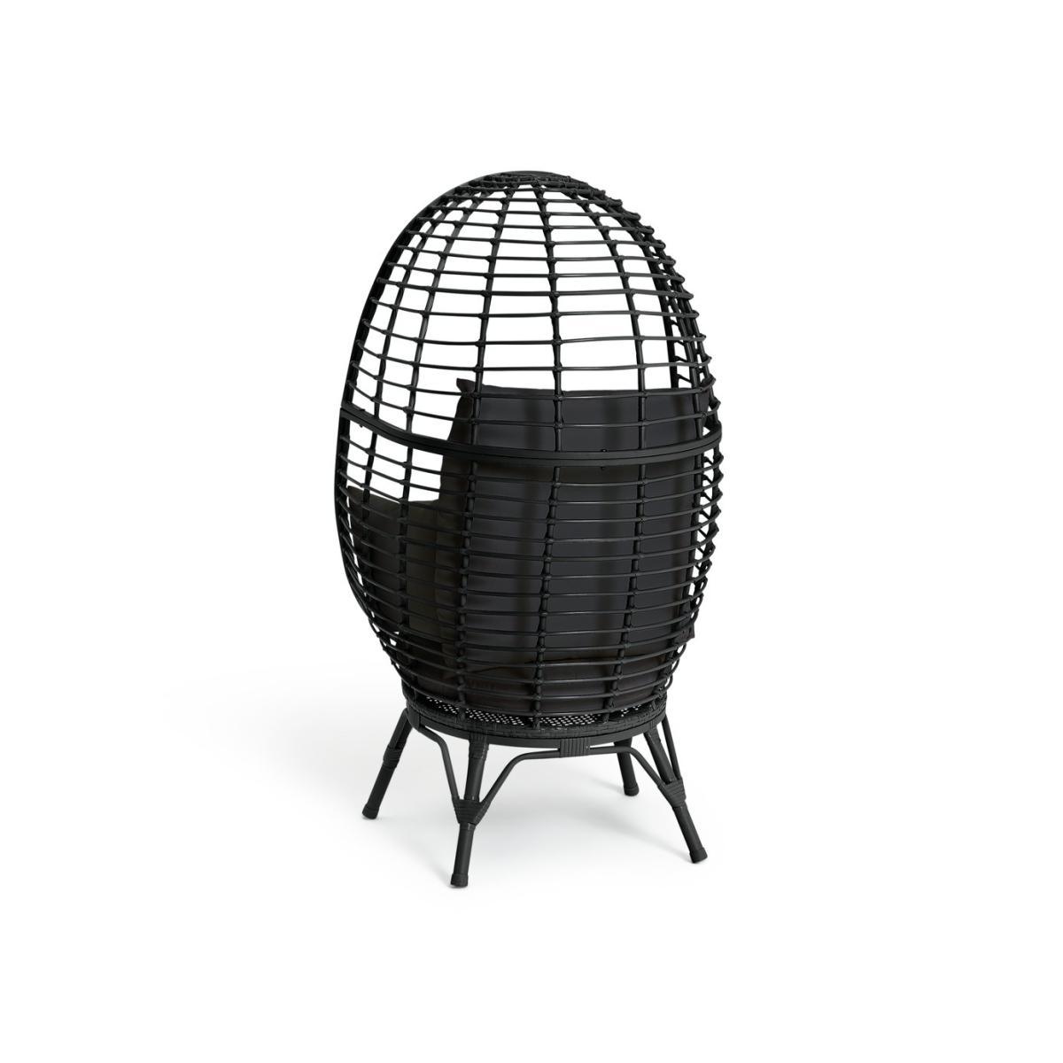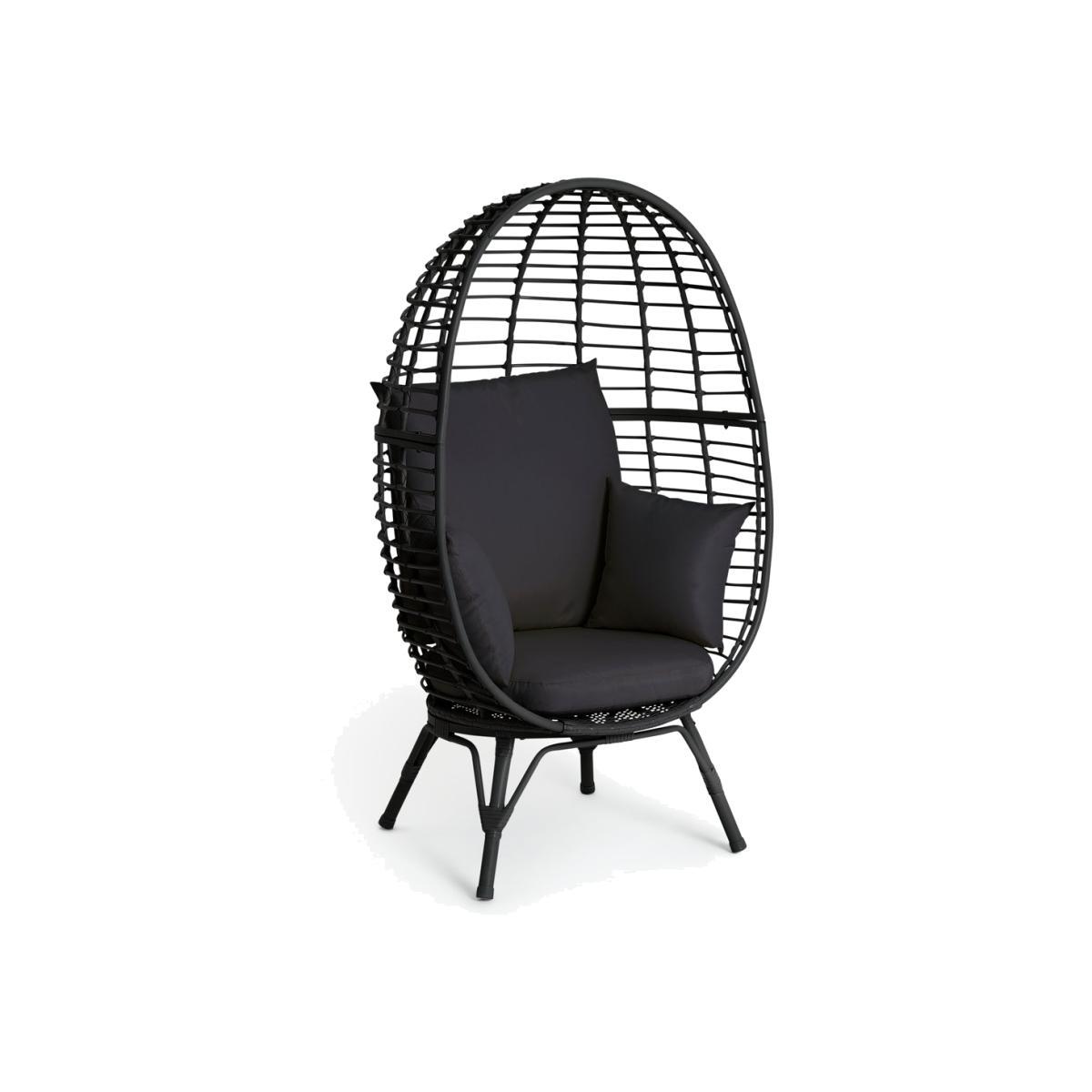Get cosy with Kora. Our striking black egg-shaped pod is comfy and contemporary. Grab a cuppa and a book, cuddle up in this cocoon, in the garden or even inside, Kora will fits perfectly even in your lounge or bedroom. Crafted with a curved steel frame and handwoven rattan detail. Add a modern rustic touch to your patio, terrace or garden. And with 4 super soft dark grey cushions, you'll always feel supported. Kora's got your back.