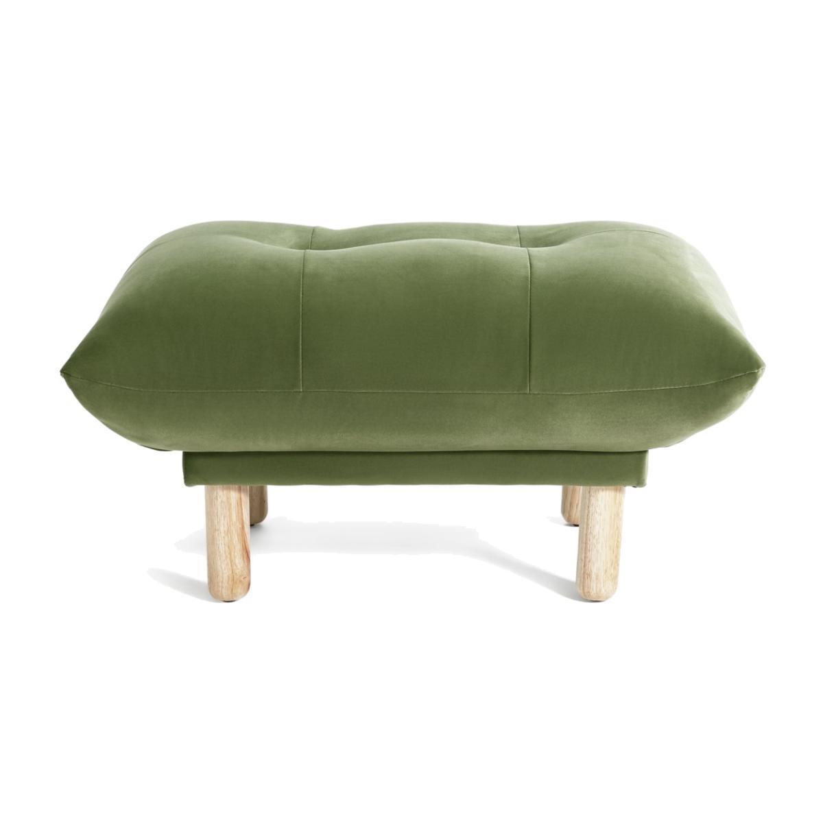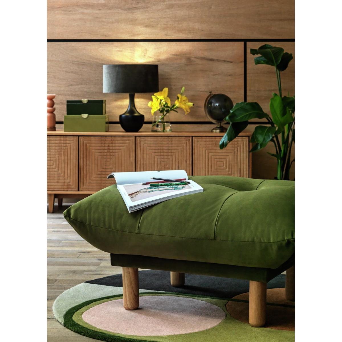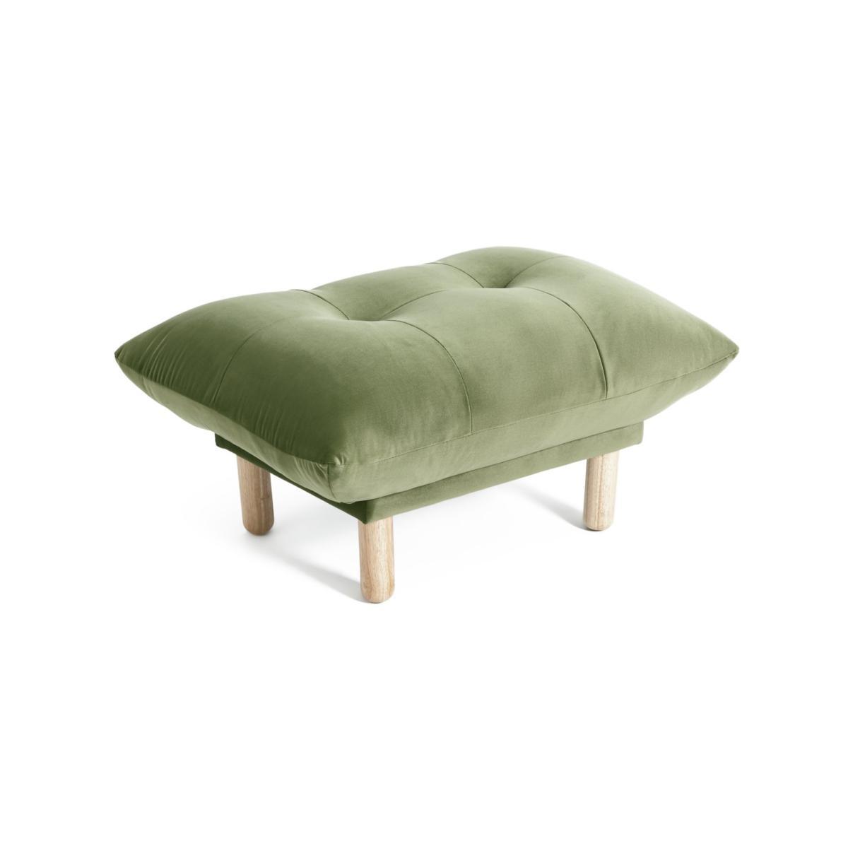 A majestic way to put your feet up. Our opulent velvet footstool in olive green is a welcome sight after a long day. Resting on natural wooden legs, the plump, foam-filled cushion makes chilling on the sofa that much more relaxing. And check out the button detailing. A classic lux touch. So, kick off your shoes and stretch out in style.