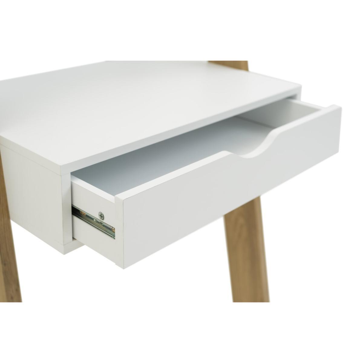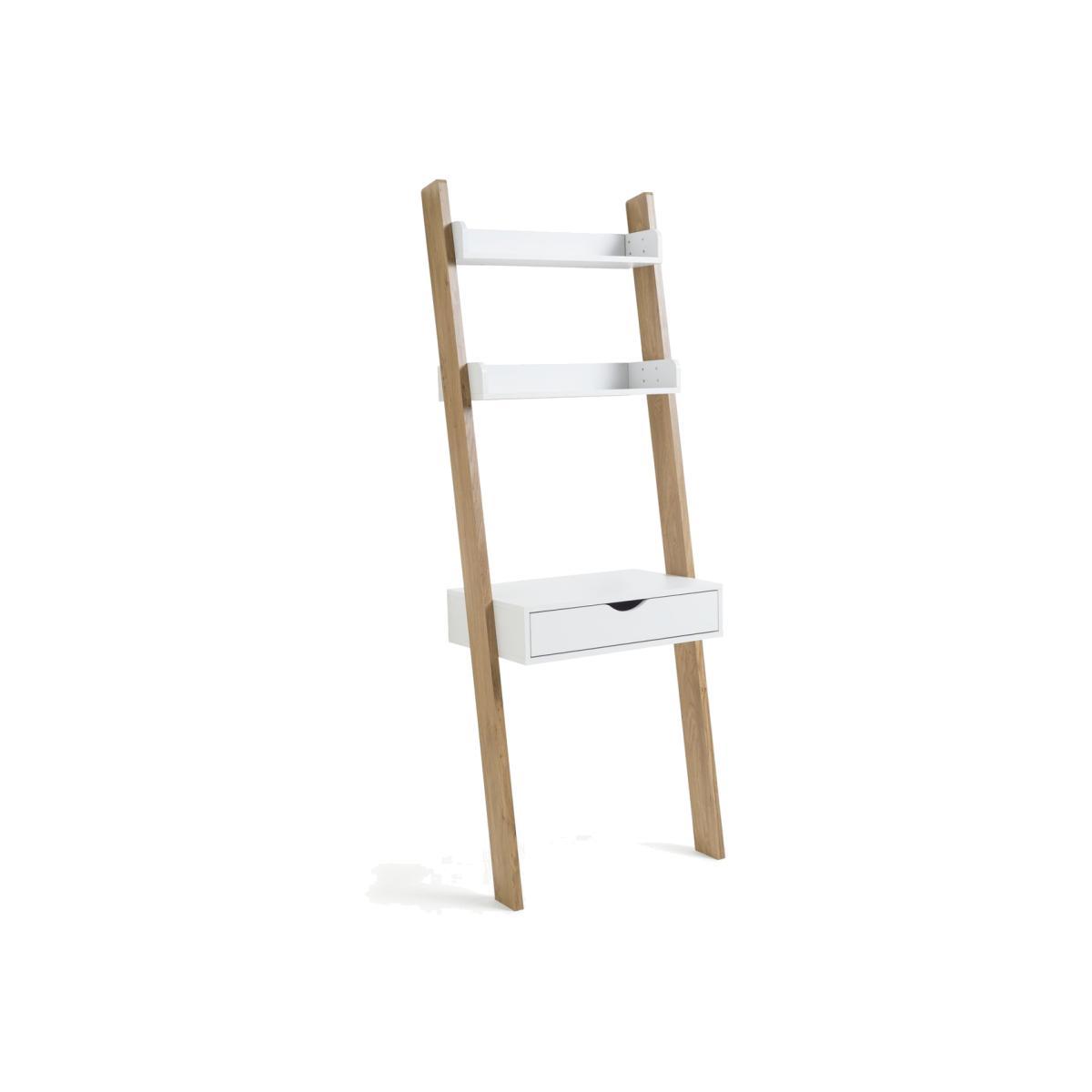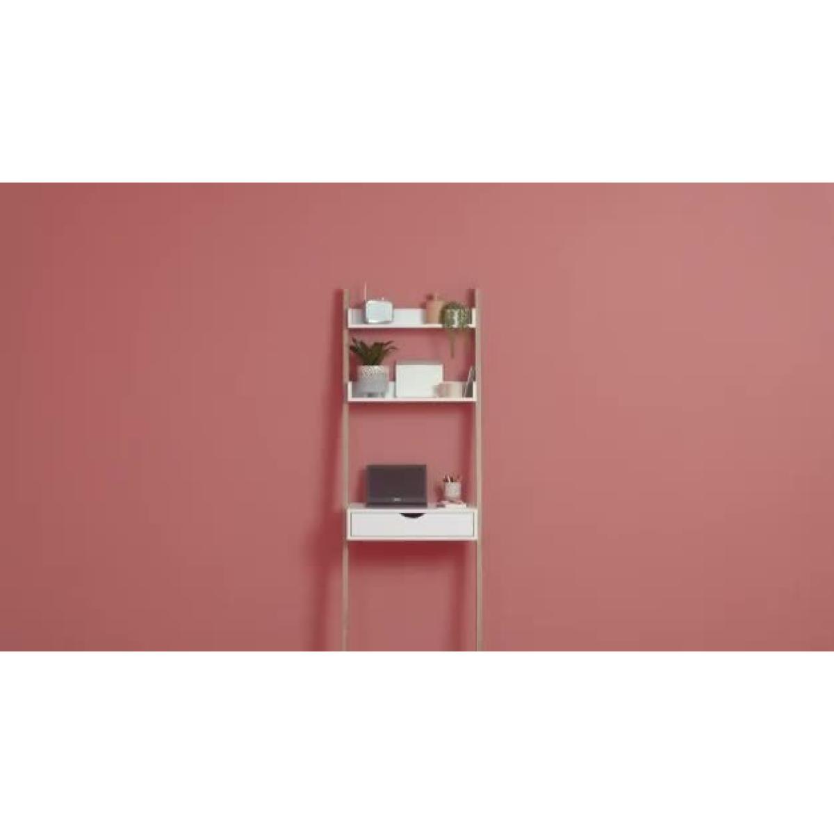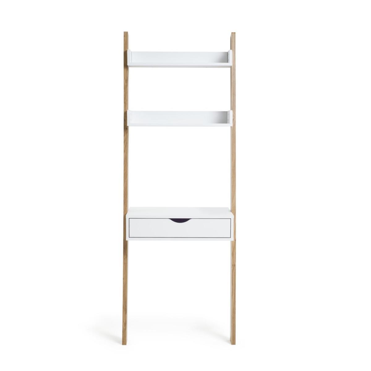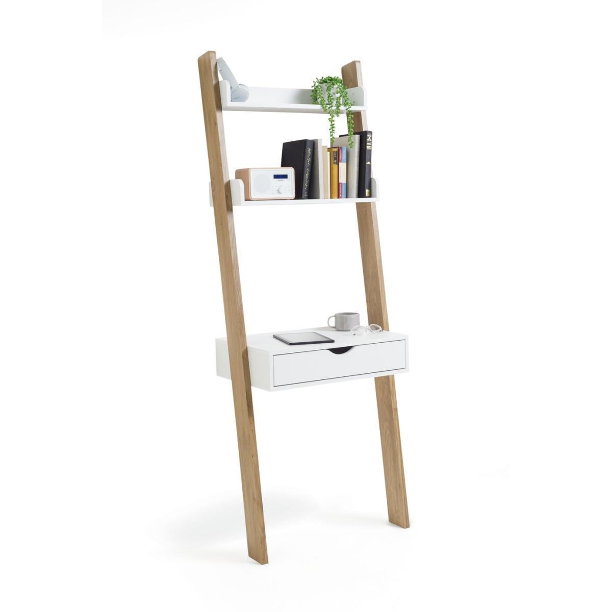 Seriously stylish space saver. Our ladder desk is sleek and slender and takes advantage of height to sneak in a few useful shelves. The white design is light and airy and hits all the right marks for the industrial trend, and also the natural look that's hot right now. Display your favourite potted plants, books or collectibles above and get to work at the desk.