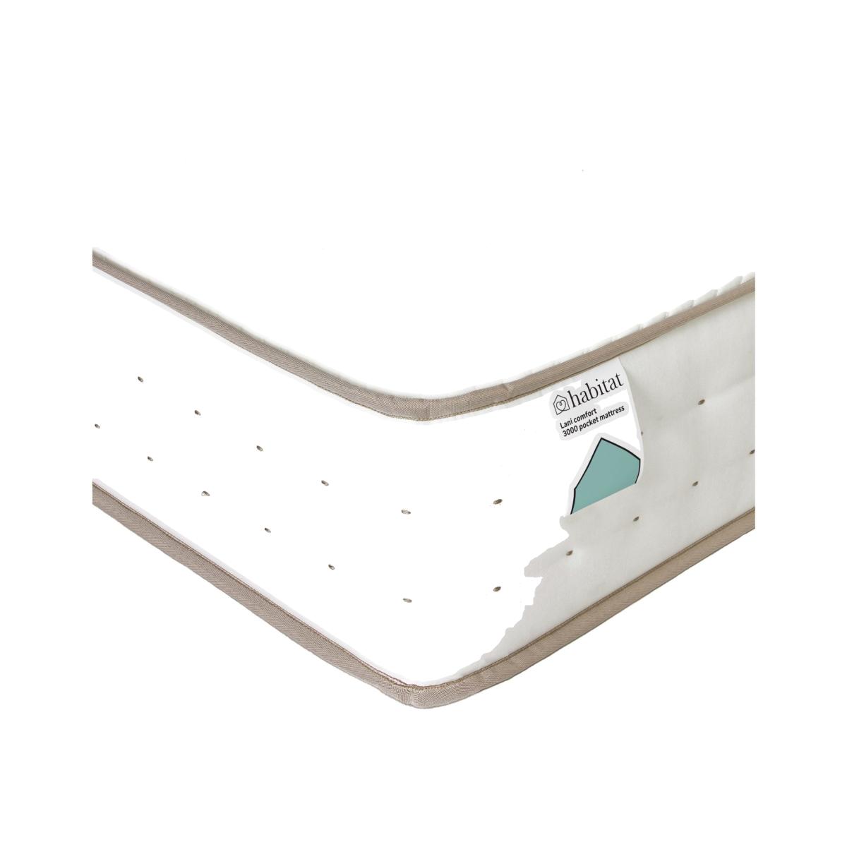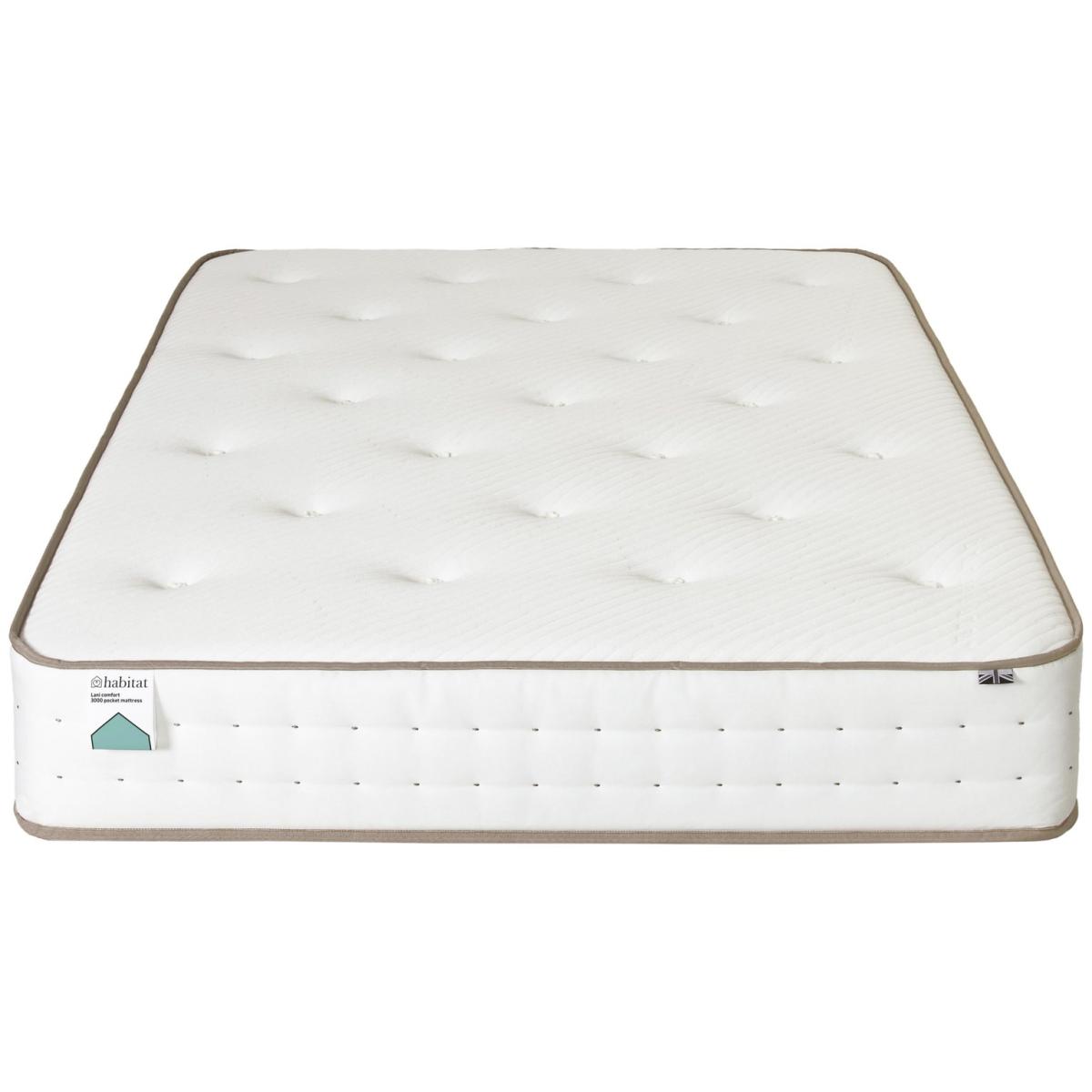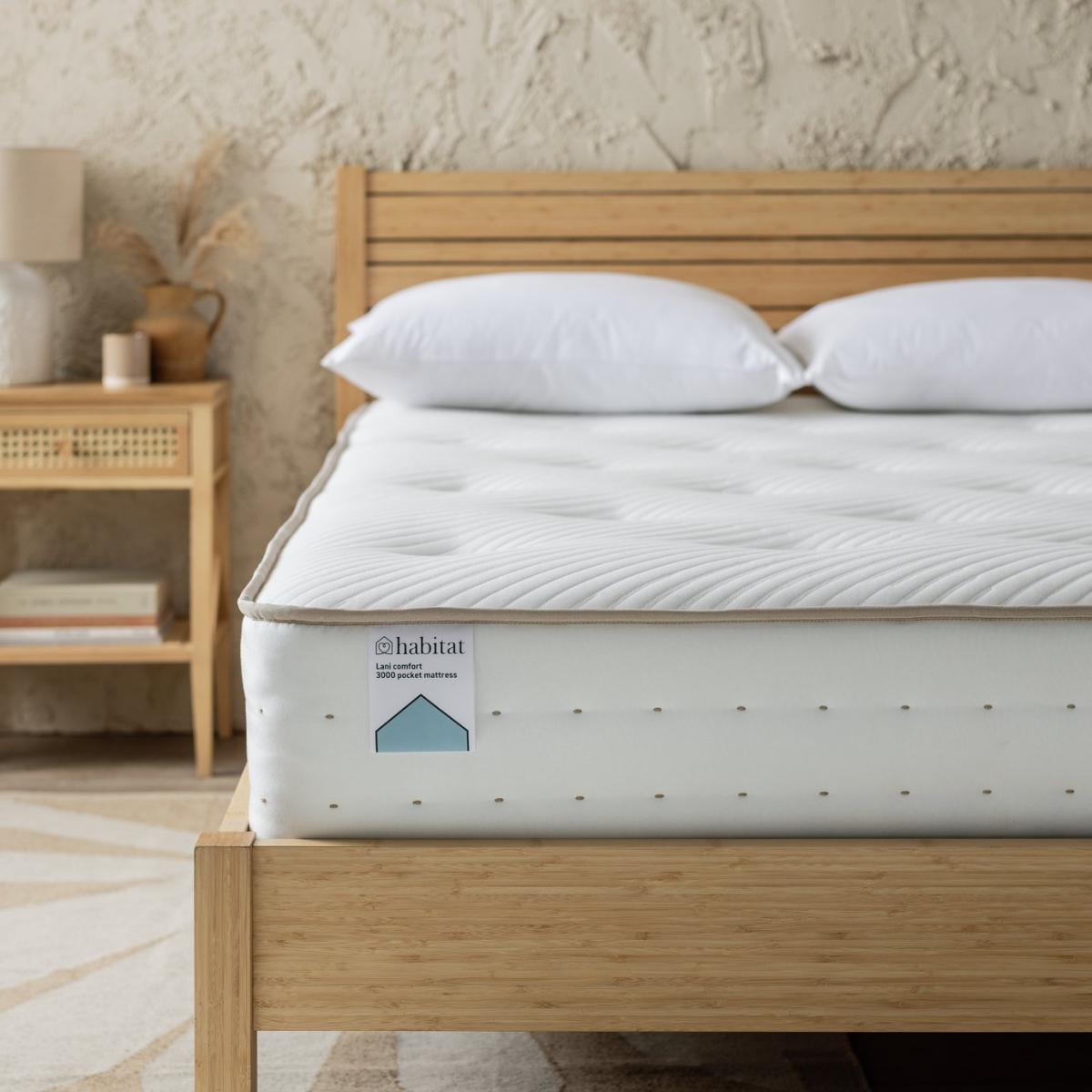 Naturally relaxing. Certified 100% British wool is the hero filling inside our Habitat exclusive tufted Lani mattress. Foam free, hypoallergenic and breathable. With 2000 individually responsive pocket springs, enhanced by a 1000 mini-pocket spring layer, that together mellow any movement. No wonder this mattress is called Comfort. Easy to care for. No need to turn this mattress. A simple, regular rotation keeps it in tip top shape. At Argos Home we want you to get the best night's sleep possible, so we offer a 100 night comfort promise on our mattresses. Try your new mattress for up to 100 nights and if you aren't sleeping soundly, we'll offer you an exchange for one that suits you better. Part of the Lani collection. Firm feel. Pocket sprung mattress with 3000 springs. Knit cover with tufted finish. No roll together. Anti allergy. Mattress size W135, L190, D28cm. No-turn mattress. Rotate mattress regularly. Made in the UK.