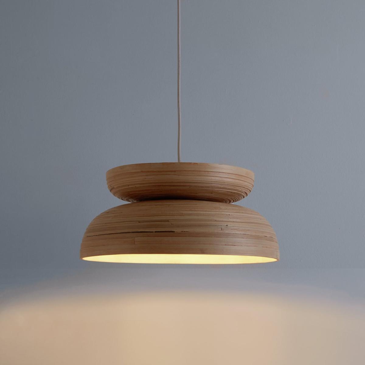 The Bamboo large natural easy-to-fit ceiling shade is a fun and visually striking design made from hand-spun bamboo and painted by hand. Designed by our in-house team and made in Vietnam, the twin bowl-shaped shade has a textured exterior and a smooth, spun bamboo interior. Perfect for hanging in multiples above a kitchen island or low over a dining table.