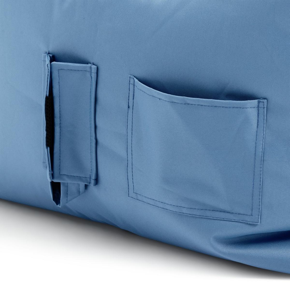 The chair bean bag has been designed as a big teenage/ adult beanbag that is also a supportive arm chair. The bags are made from a strong, durable, shower-proof and UV Resistant material - meaning the sun and rain won't damage them. Although perfectly suited for use outside, these bean bags look great in any living room or bedroom and come with a bottle holder and a pocket to put your remotes or phones in. These bean bags are not fully waterproof due to the stitch detail so if there's more than a light shower, it's time to head inside!