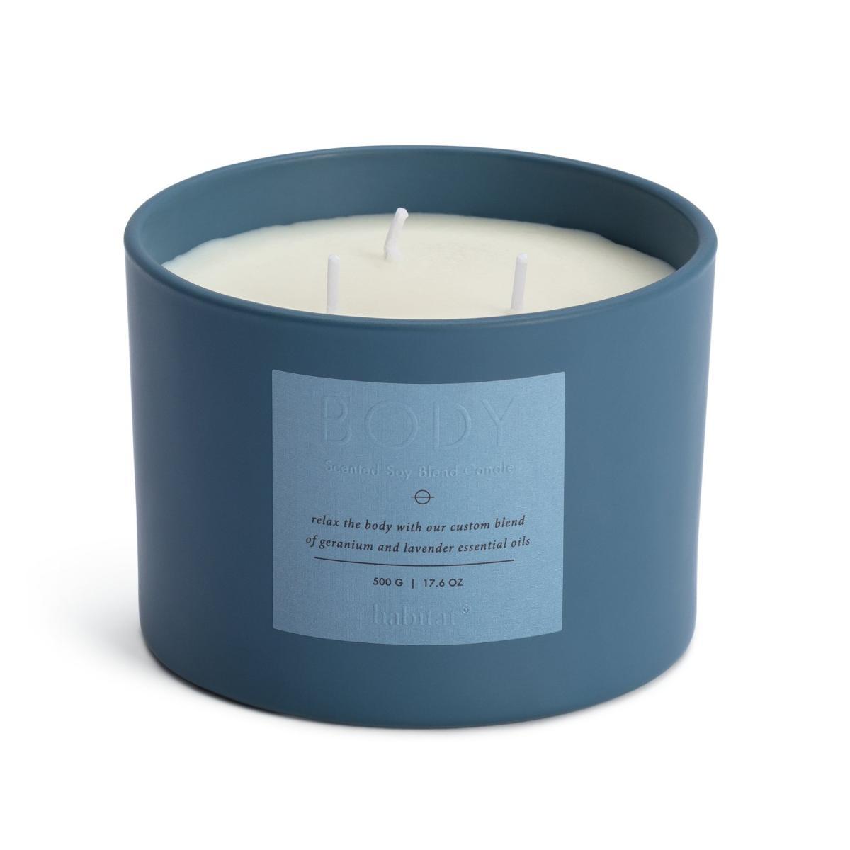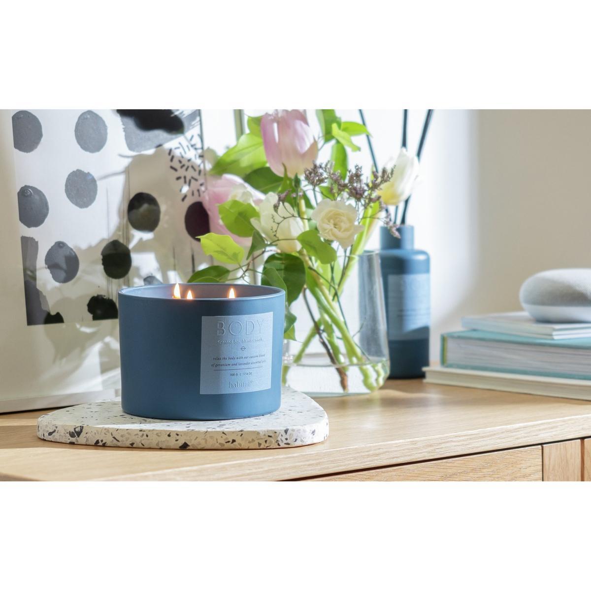 Time for a reset? Unwind with a little help from this geranium and lavender candle. With 40 hours of burn time, you can enjoy its fragrance again and again. And thanks to its elegant blue holder, it looks great perched on your coffee table, mantlepiece or bathroom shelf. A blend of palm and soy wax, this large multi-wick candle is your little oasis of calm. Sublime scent, beautifully presented.