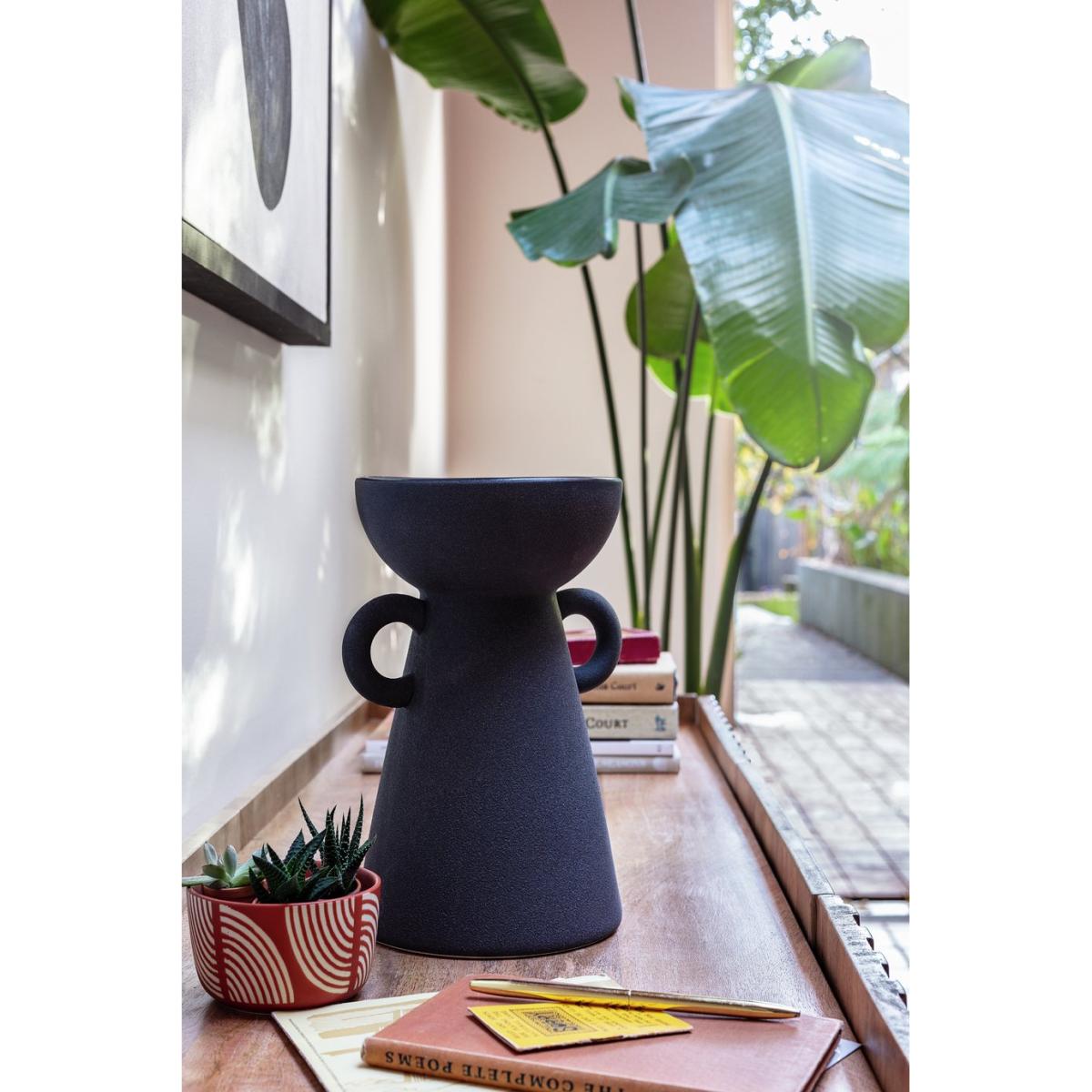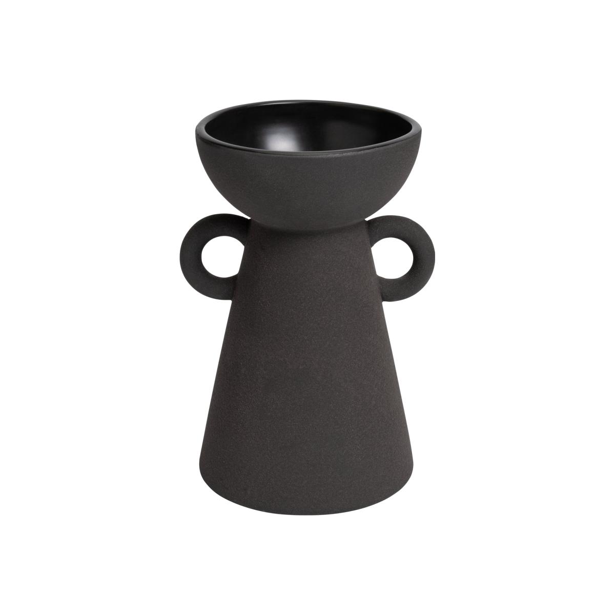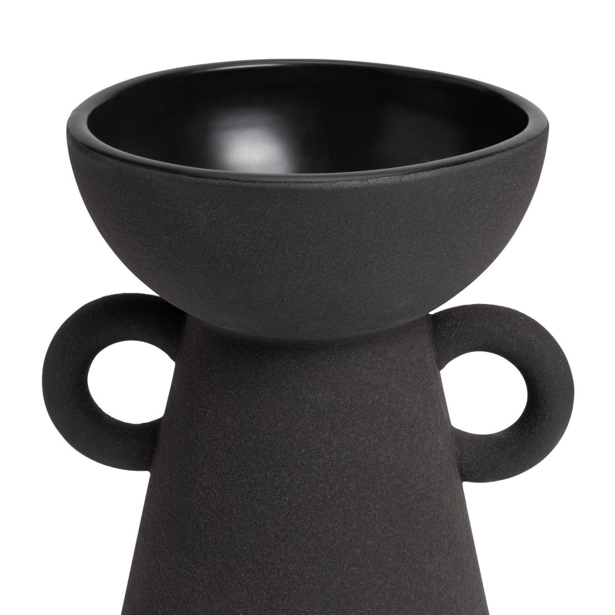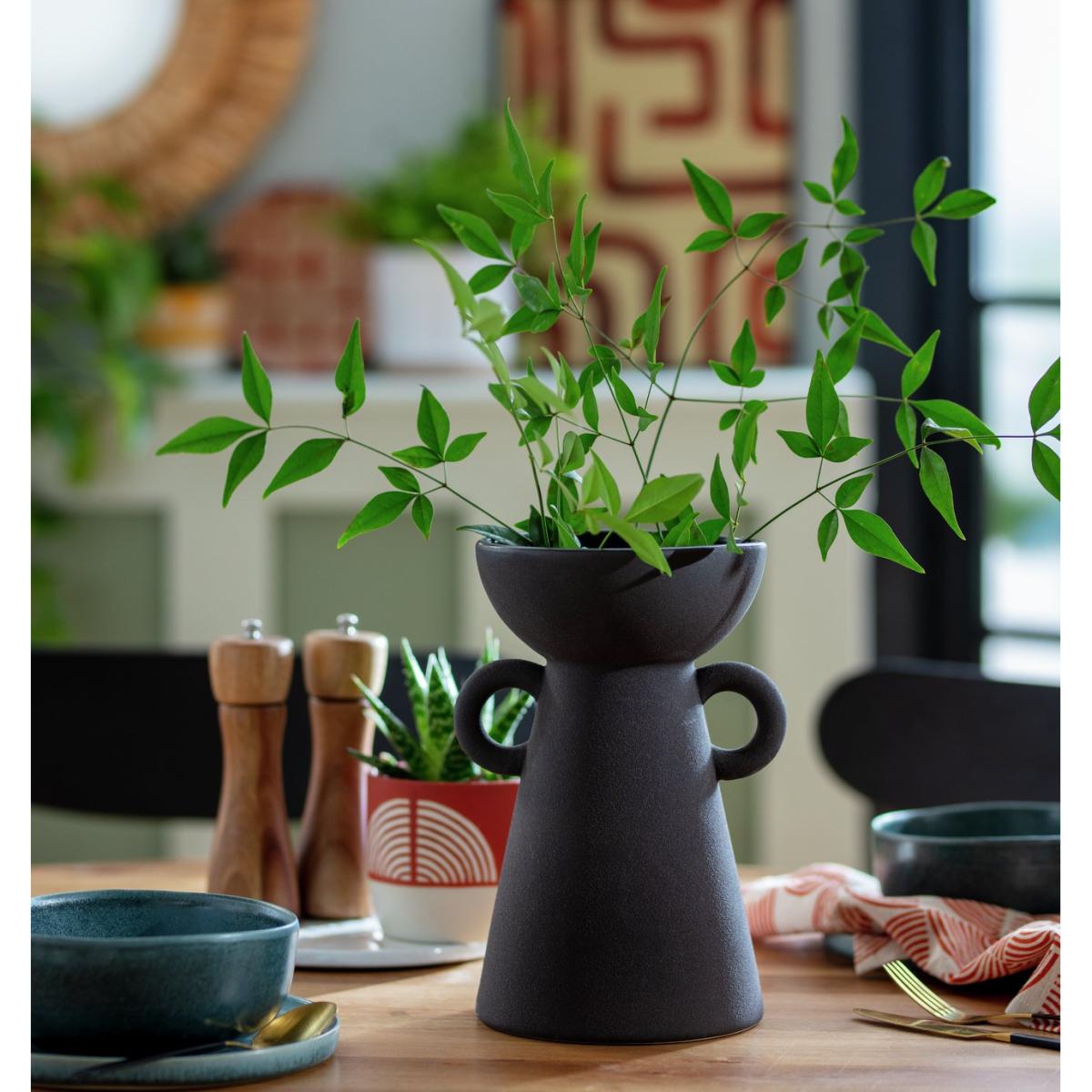 Looking for a distinctively different vase? You've found it. Embracing bold geometric shapes, the contemporary design of this matte black ceramic vase is simple and striking. The handles add to the design as well as making it easy to carry.