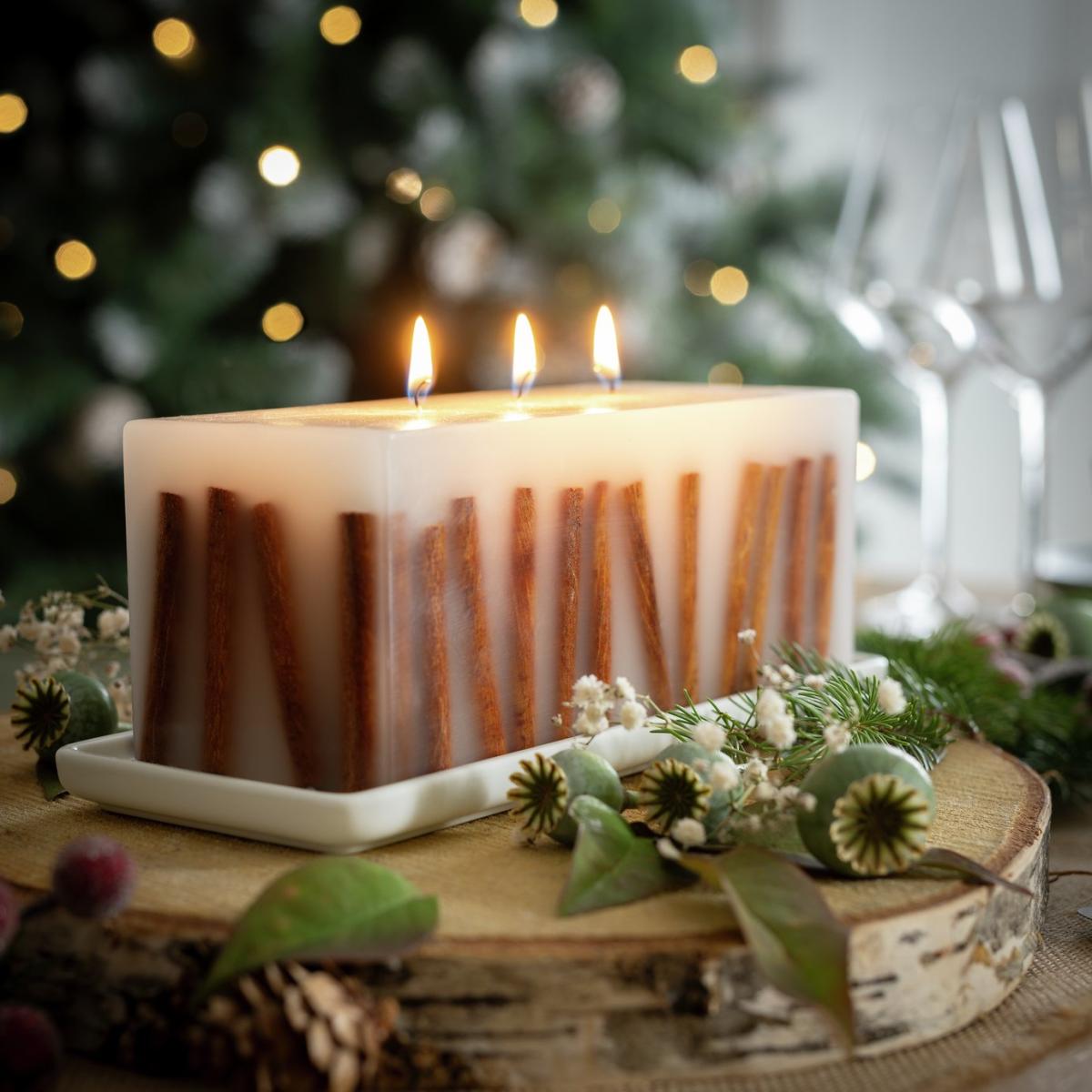 This large cinnamon inclusion candle is a real statement piece that adds warmth and texture to neutral or rustic interiors. I love pairing it with natural wood or stone surfaces, where its earthy tones and chunky cinnamon sticks can be showcased as a decorative element even when unlit. It works particularly well in open-plan living spaces or on mantelpieces, creating a cosy, inviting atmosphere with minimal effort. For styling tips, consider placing it alongside other natural textures like woven baskets or linen textiles to enhance its organic feel. Due to its size, it makes a great centrepiece on a coffee table or sideboard, adding a functional yet attractive focal point.