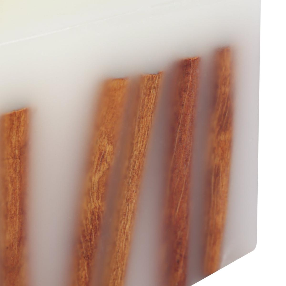 Welcome the spirit of winter with our large fir balsam inclusion candle. Notes of clove mingle with pine and maple on a cedar base. The result is a warm, rich woody blend with a hint of sweetness. A fragrance to celebrate. A visual treat too. Featuring organic cinnamon that wows through the pale creamy wax. Fir Balsam scent. Paraffin wax. Approximate burn time 45 hours. Size H8, W20, D8cm.