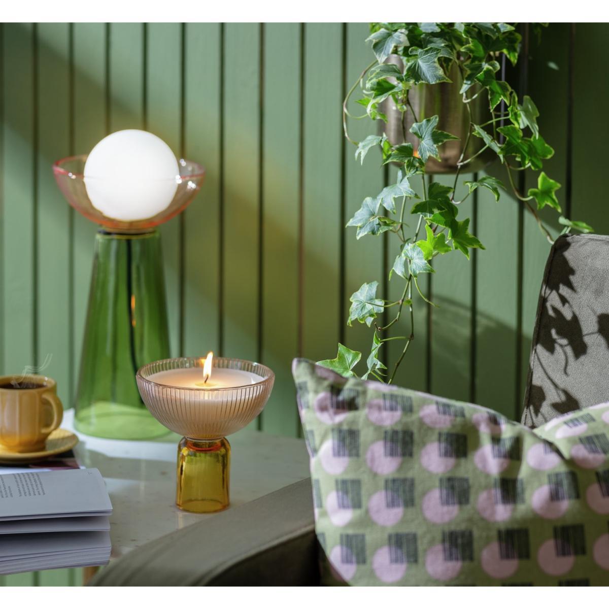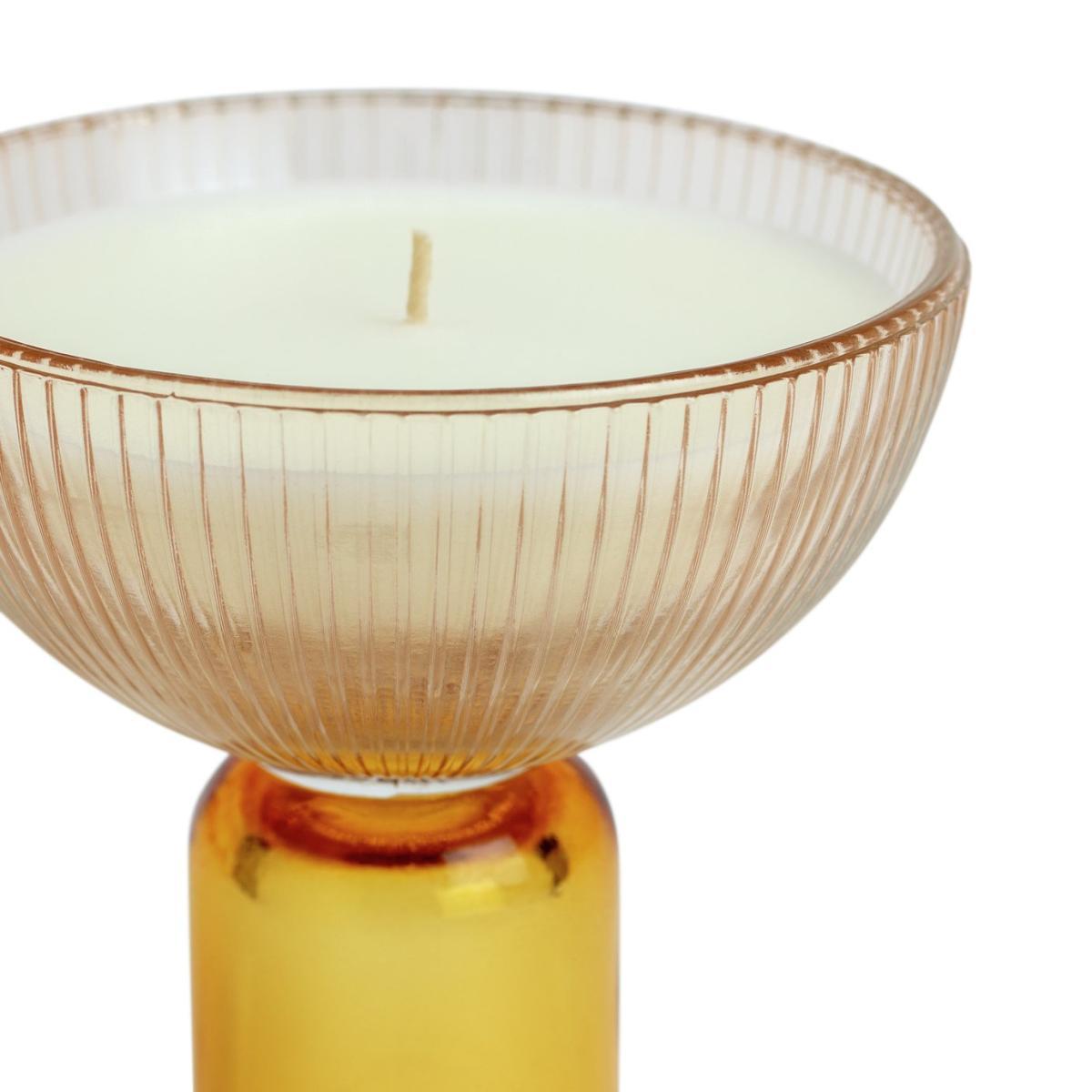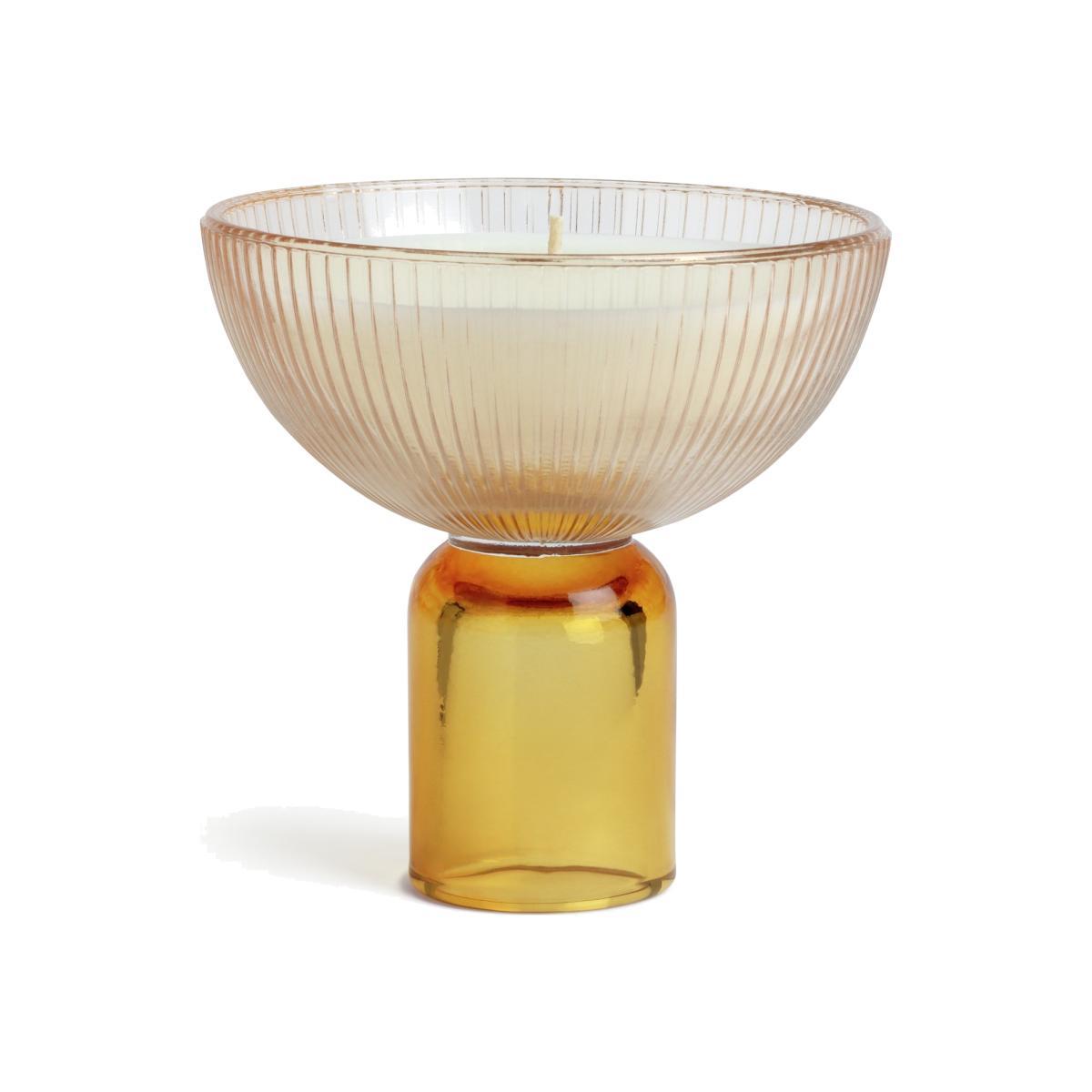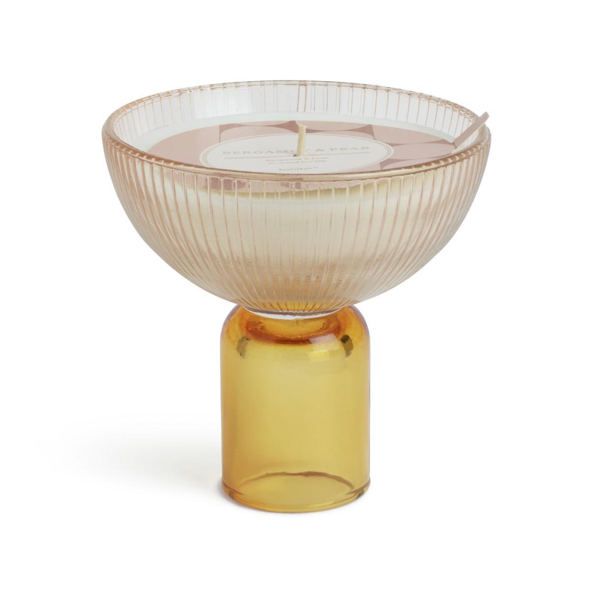 Effortlessly elegant, fragrantly fresh. Sitting within warm pink and yellow coloured glass our scented Citrine candle is every bit the looker. With a gently curved form, the textured bowl sits perfectly on a fixed stand. An instant coffee table centrepiece. Enjoy bursts of sweet pear and zesty bergamot as you bask in the warm glow. Just divine.