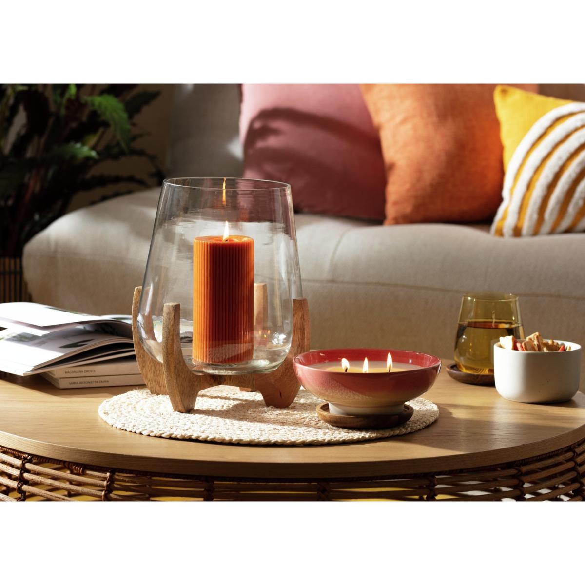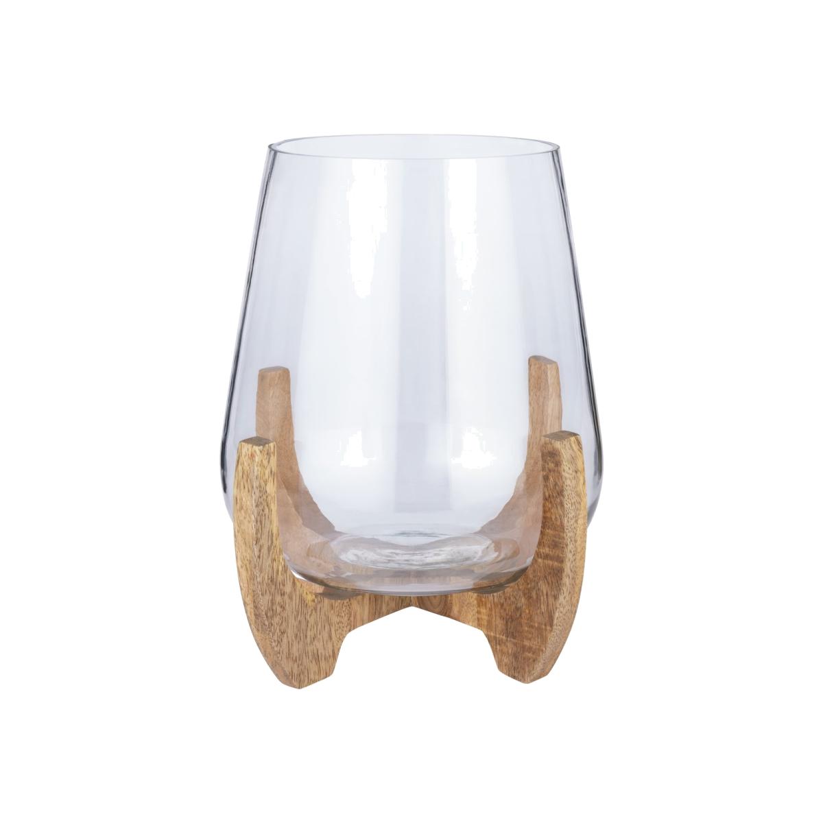 I love this hurricane for its blend of natural materials and versatile style, making it a practical yet stylish choice. The wooden legs add warmth and texture, lending itself well to rustic, Scandinavian, or contemporary interiors. It works particularly well styled with foliage or seasonal arrangements, but can also stand alone as a sculptural piece. For a balanced look, try pairing it with neutral tones or soft textiles to highlight its natural aesthetic, or with colourful blooms to create a vibrant focal point. Practical tip: its sturdy base makes it ideal for centrepieces or side tables, bringing both function and style to your space.