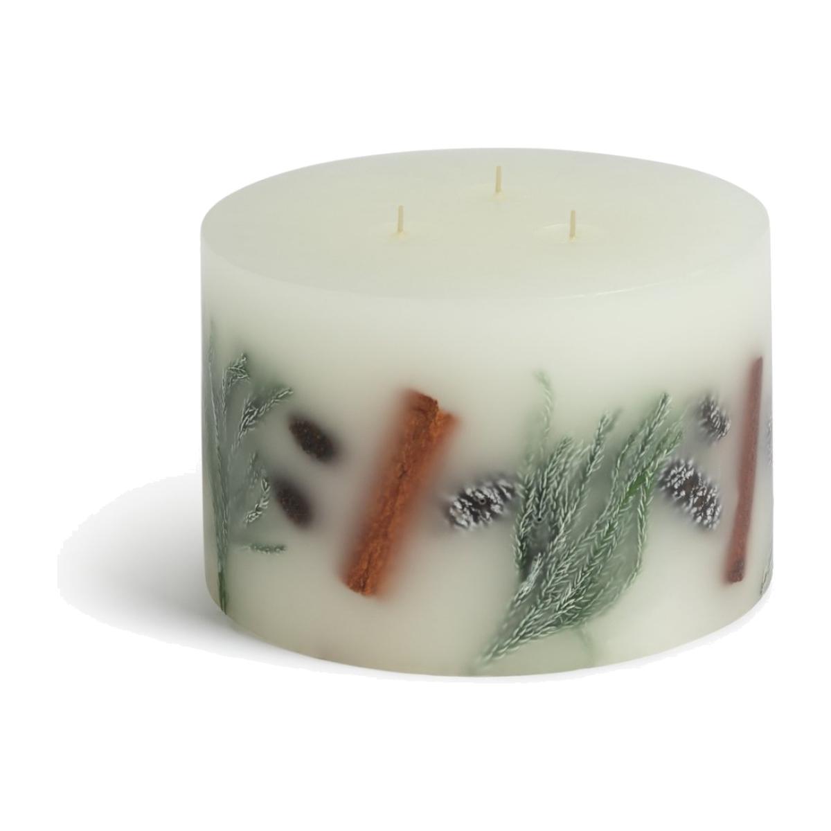 Can you smell the fresh pine? Light up this large 3-wick candle to feel like you're in a winter wonderland. Crisp winter air imbued with raw green sweet natural notes. Refreshing and laced with just a touch of cinnamon. Delicious. Even better the organic botanicals of pine, cinnamon and fir cones are all on display through the pale creamy wax. Beautiful. This candle is set to take centre stage on any table. 65 hours of burn time promise many aromatic moments. Marvelous as a gift, marvelous for me time. Spices scent. Soy wax. Approximate burn time 65 hours. Size H10.1, W15.2, D15.2cm. Diameter 15.2cm.