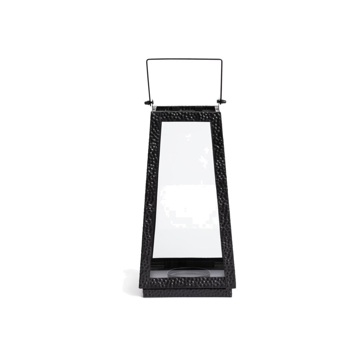 A glamorous glow. Our tall matte black iron and glass lantern has a contemporary tapered shape and dotted textured finish. Dining alfresco or snuggled up on the sofa? Place a candle inside this handsome holder and create a cosy feel. The sturdy handle makes it easy to carry or hook up. Pop it on the floor, on a table or suspend from a tree. Traditionally romantic. Instantly atmospheric. Setting the mood? Bring on the ambience with lamps and candles in our collection. Size H50, W28, D28cm.