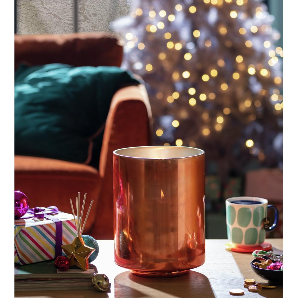 I love this candle holder for its bold, contemporary silhouette and striking copper finish, which adds warmth and sophistication to any setting. It works particularly well in modern or industrial interiors, but can also bring a touch of glamour to more traditional spaces when styled thoughtfully. For practical tips, consider using it as a centrepiece on a dining table or mantel, pairing it with other metallic accents or textured accessories for layered interest. It’s also versatile enough to complement neutral palettes or to serve as a statement in colourful arrangements. Just ensure the candle fits securely and consider adding a diffuser or greenery around it to soften its look in more relaxed environments.