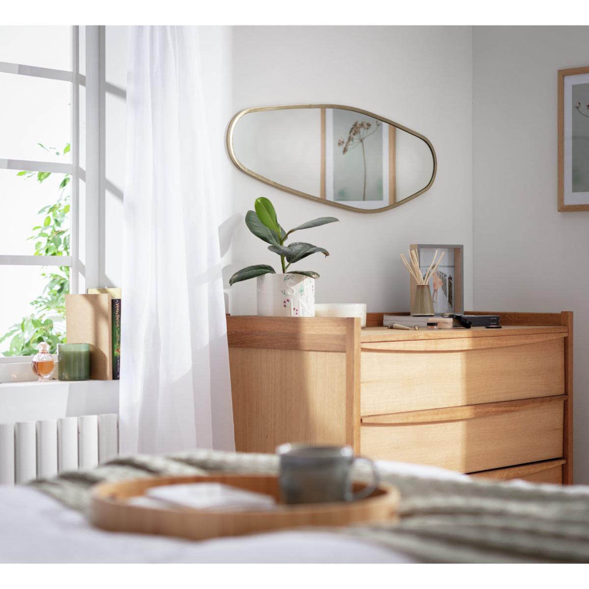 Perfectly imperfect. Curvaceous and characterful, this oval wall mirror will put a smile on your face whenever you pass by. With its antiqued gold finish, this charming long mirror is ideal for a hallway, bedroom, or landing. Hang lengthways for a full outfit view or go horizontal for a close-up on hair and make-up. With super easy fixings included, you're looking good to go.
