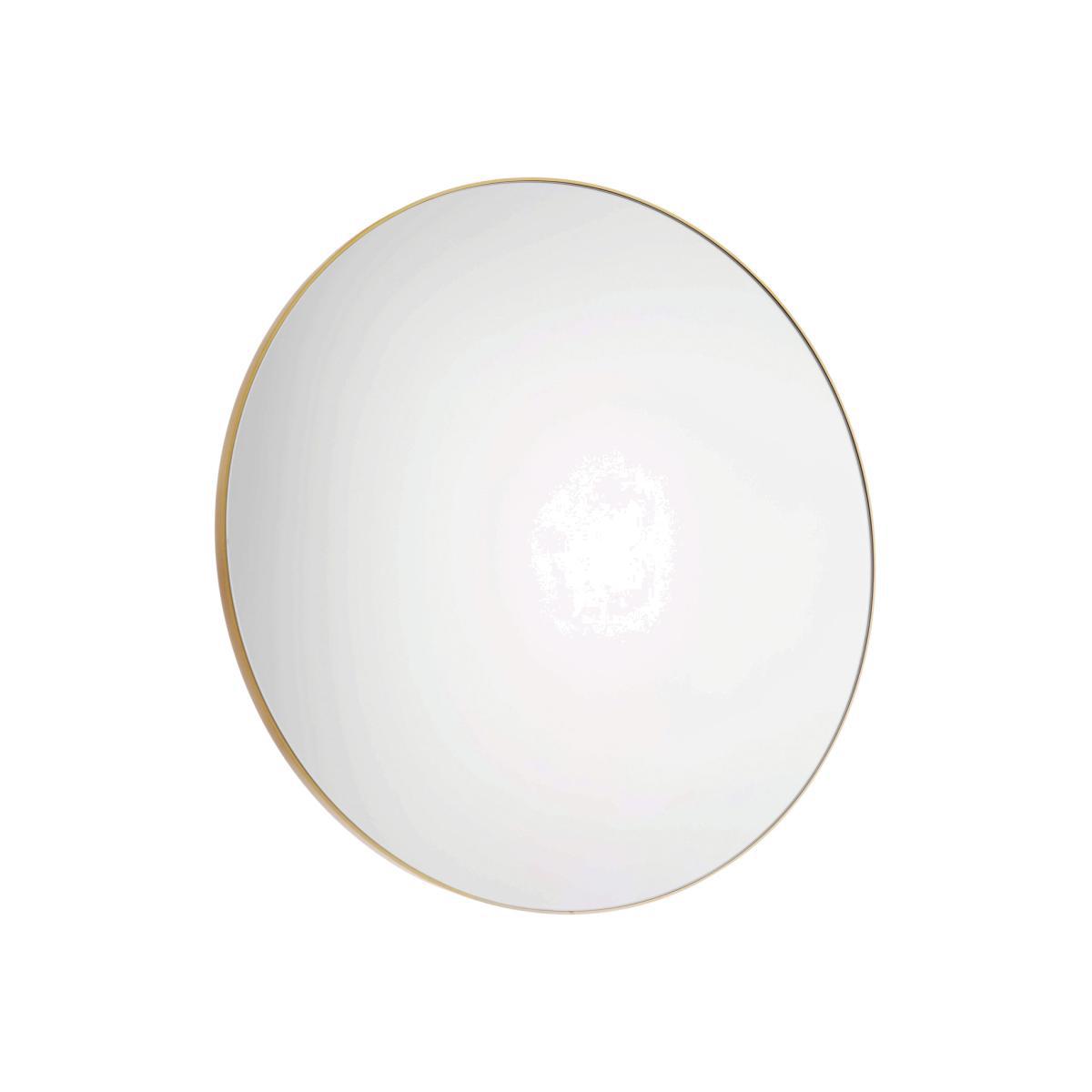 A sleek and sophisticated addition to any room, the Patsy large round wall mirror has a brushed gold frame and a slender profile. A great statement piece, this mirror's generous size has the power to instantly transform and open up a space. Patsy's stylish, simplistic design will effortlessly blend into your existing decor to create a focal point in your living room, hallway or bathroom.