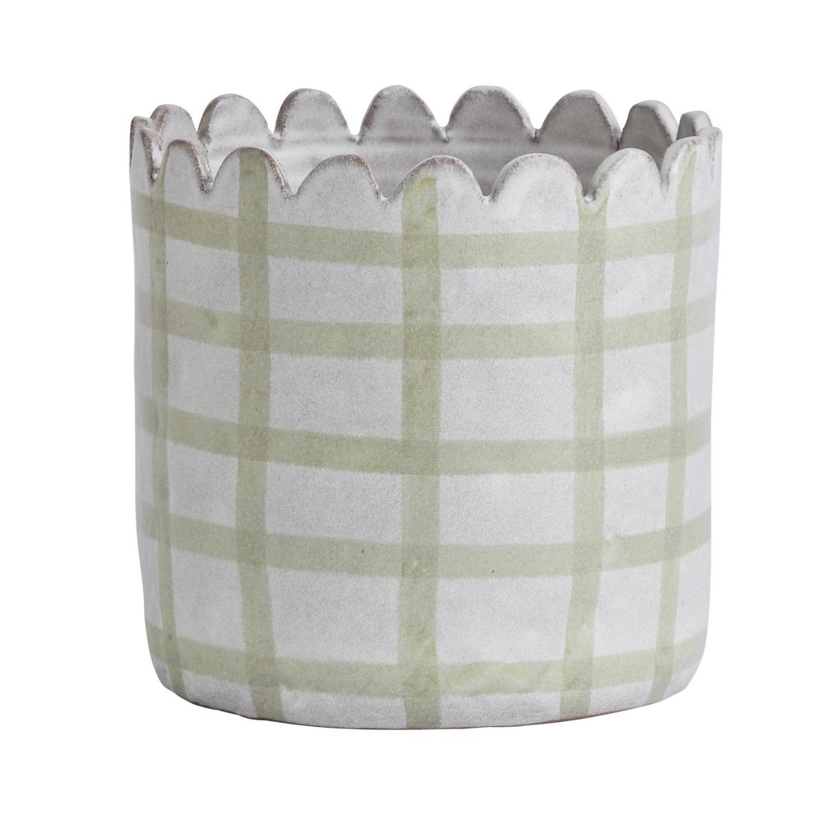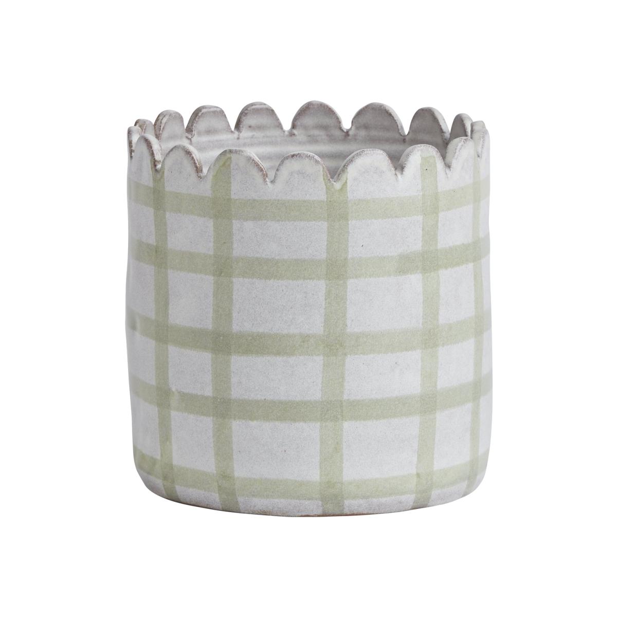 A sweet spot for your greenery. This large ceramic planter comes in a checked green and grey design with a charming, scalloped edge. Cute and colourful with just the right amount of chintz. It's hand-painted too, which means no two pieces are the same. Great for adding a vintage-inspired feel to your decor.