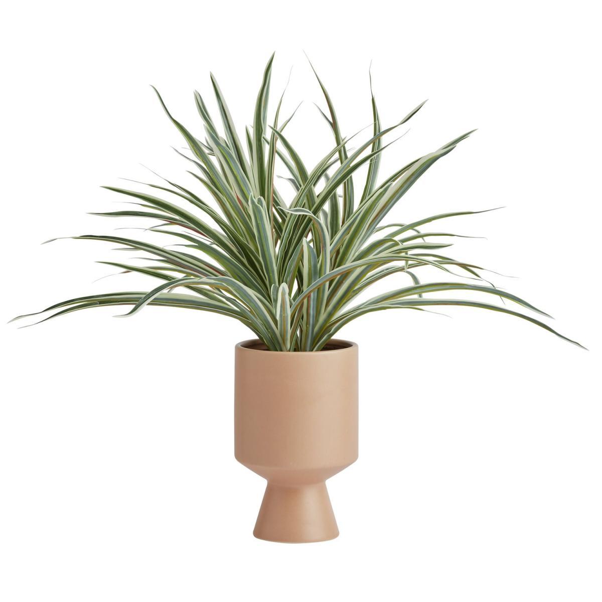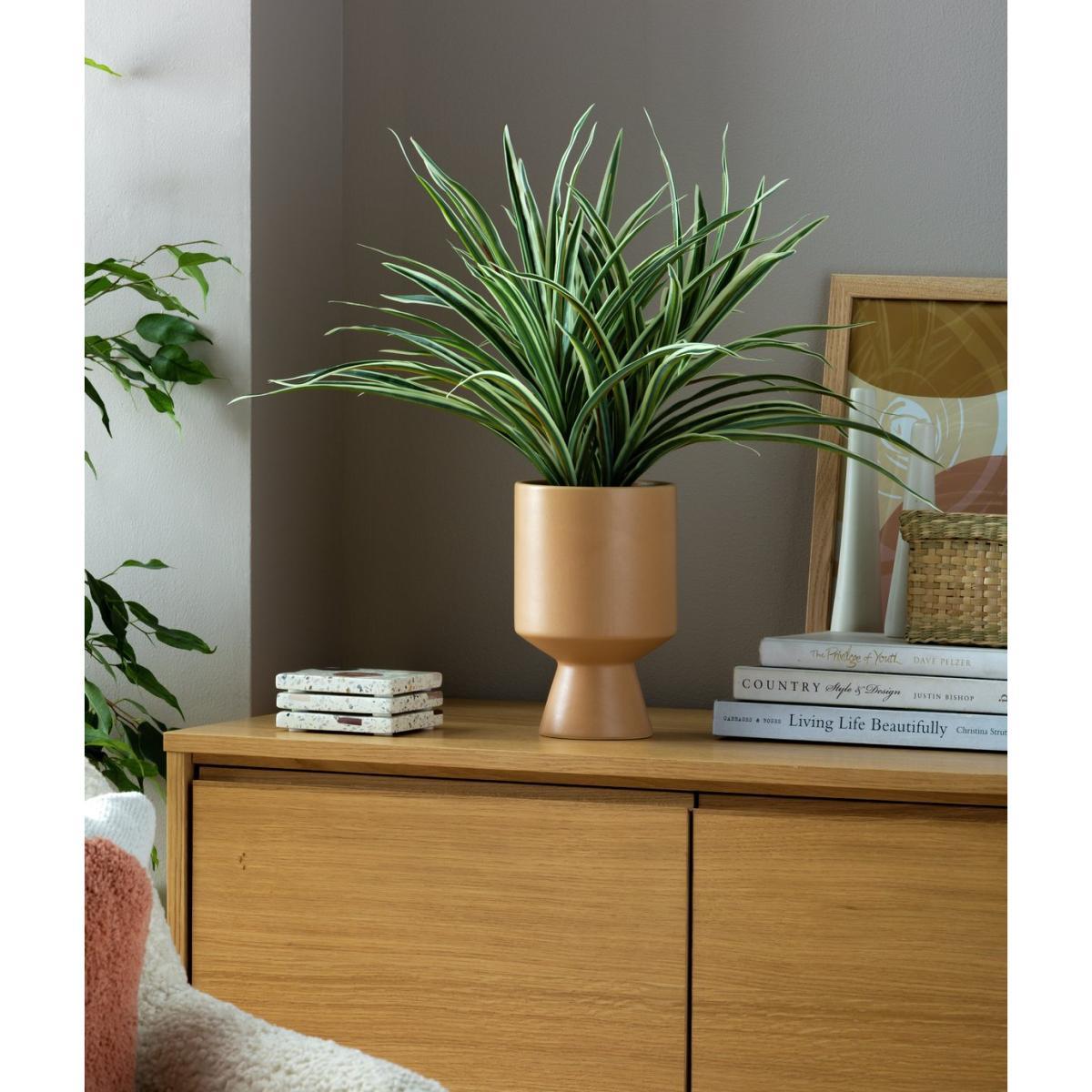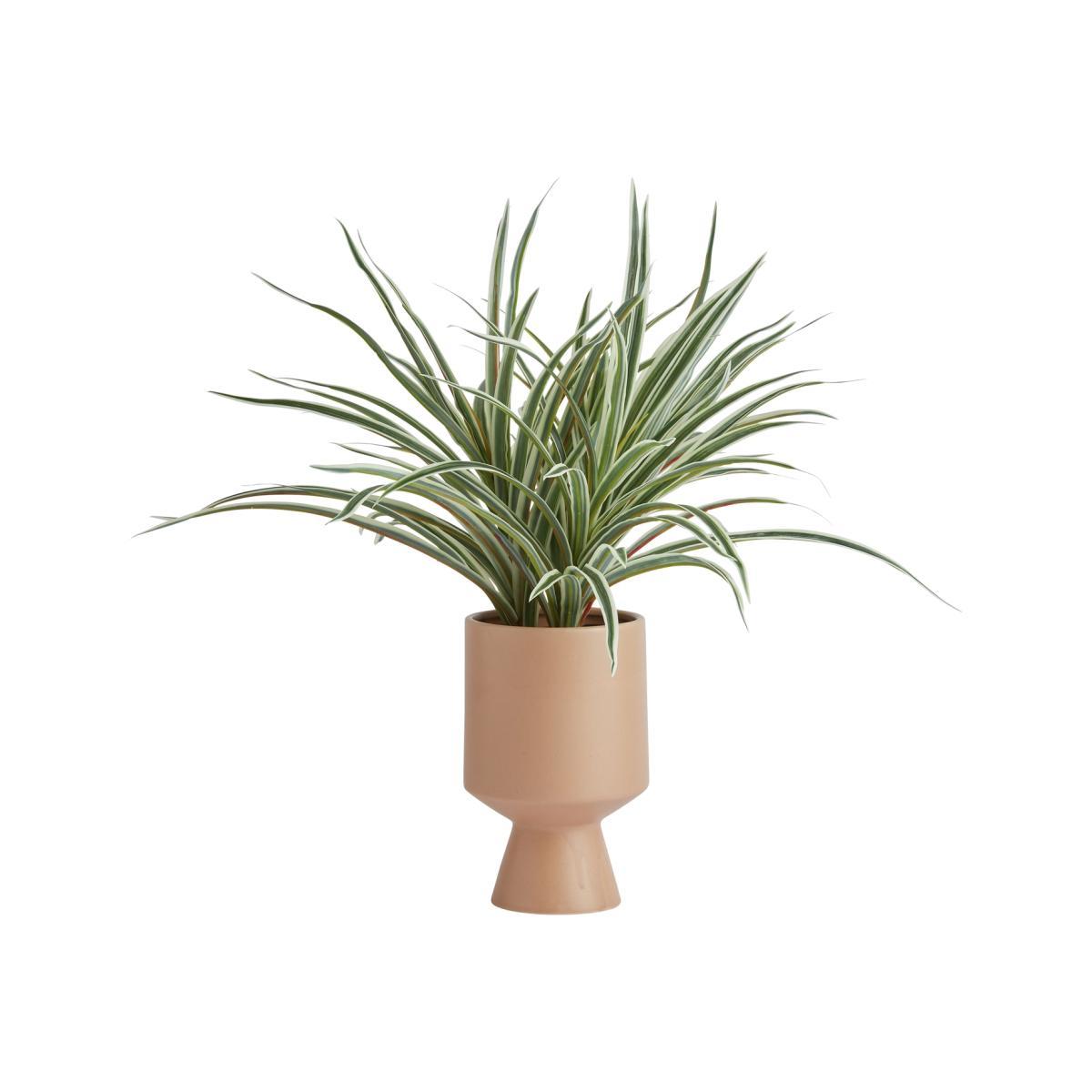 Go with the faux. Our potted spider plant looks gorgeous all year round. Sitting pretty in a tapered ceramic pot in warm, natural tones. It'll bring a touch of Scandi style to your lounge, office or bedroom. Long, detailed leaves look just like the real thing, no pruning required. Pop it on a sideboard or in a corner of the room for instant leafy luxury. Lush.