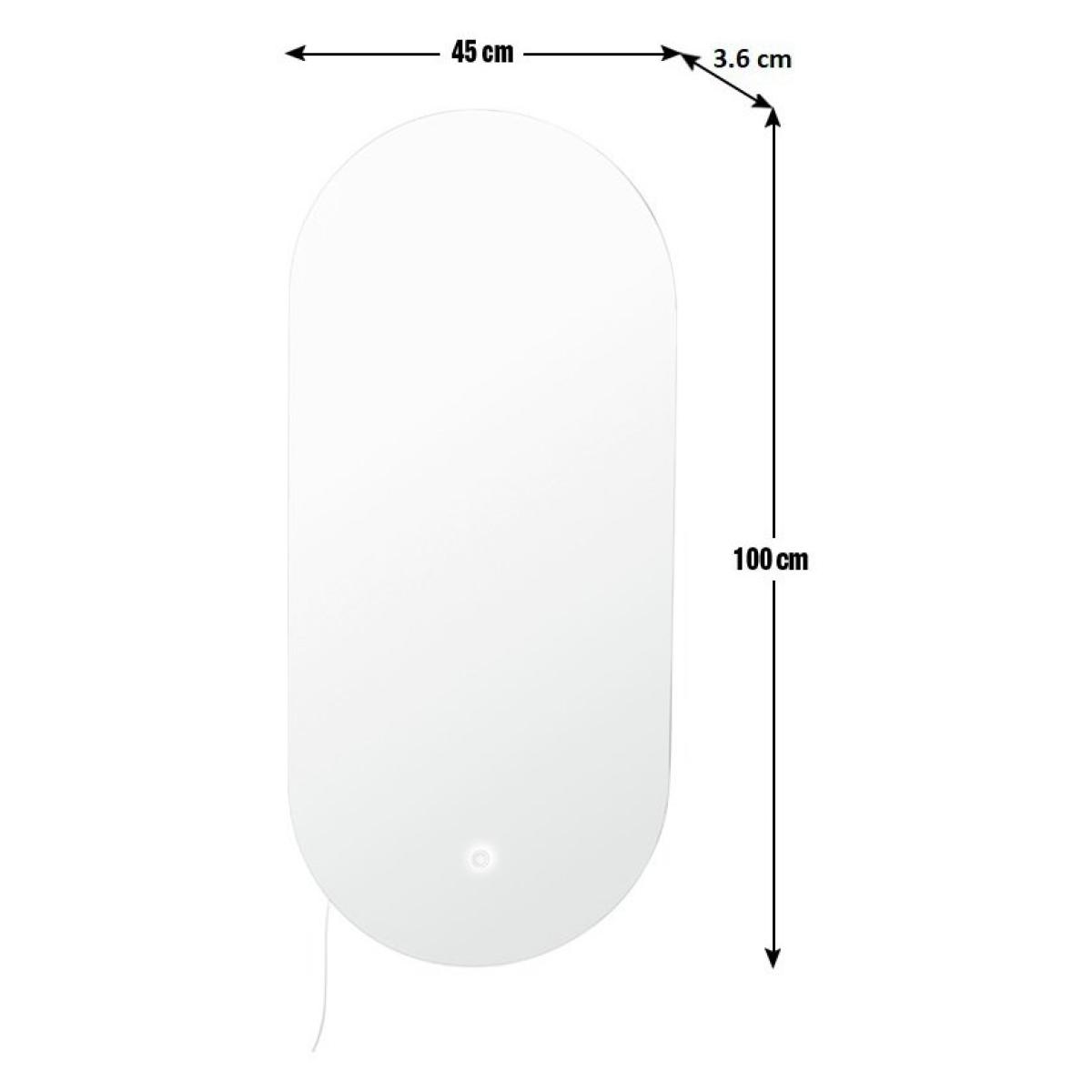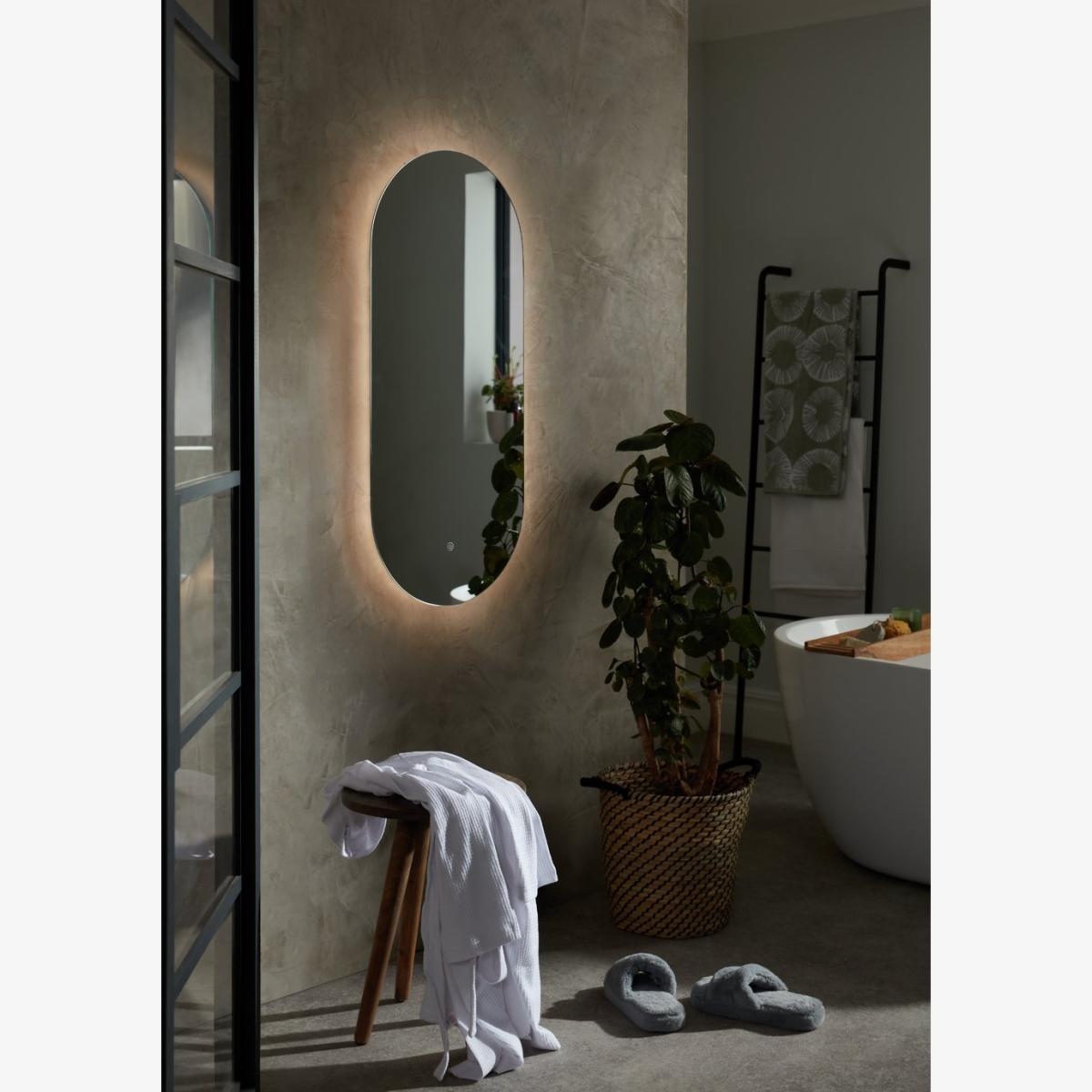 Lights, camera, action. Our glam oval LED mirror is a real star. Clever too. With a de-misting function, steamy bathroom mirrors will be a thing of the past. Ideal for getting ready right after your shower. The bright backlight makes shaving, applying makeup or performing a skincare routine so much easier. And when you're in the mood for a change, just switch from bright light to low light. You ready for your close up? Once wired, the smart mirror turns on and off with a simple touch action. So modern, so smooth. Feel like giving your bathroom a mini makeover? Explore our selection of accessories ranging from towel rails to storage units. Dimensions: Size H100, W45, D3.6cm. Bulb information: Frameless. IP rating 44. Requires wiring. 16W LED (included). Lumen maintenance factor 85%. General information: Manufacturer's 1 year guarantee.