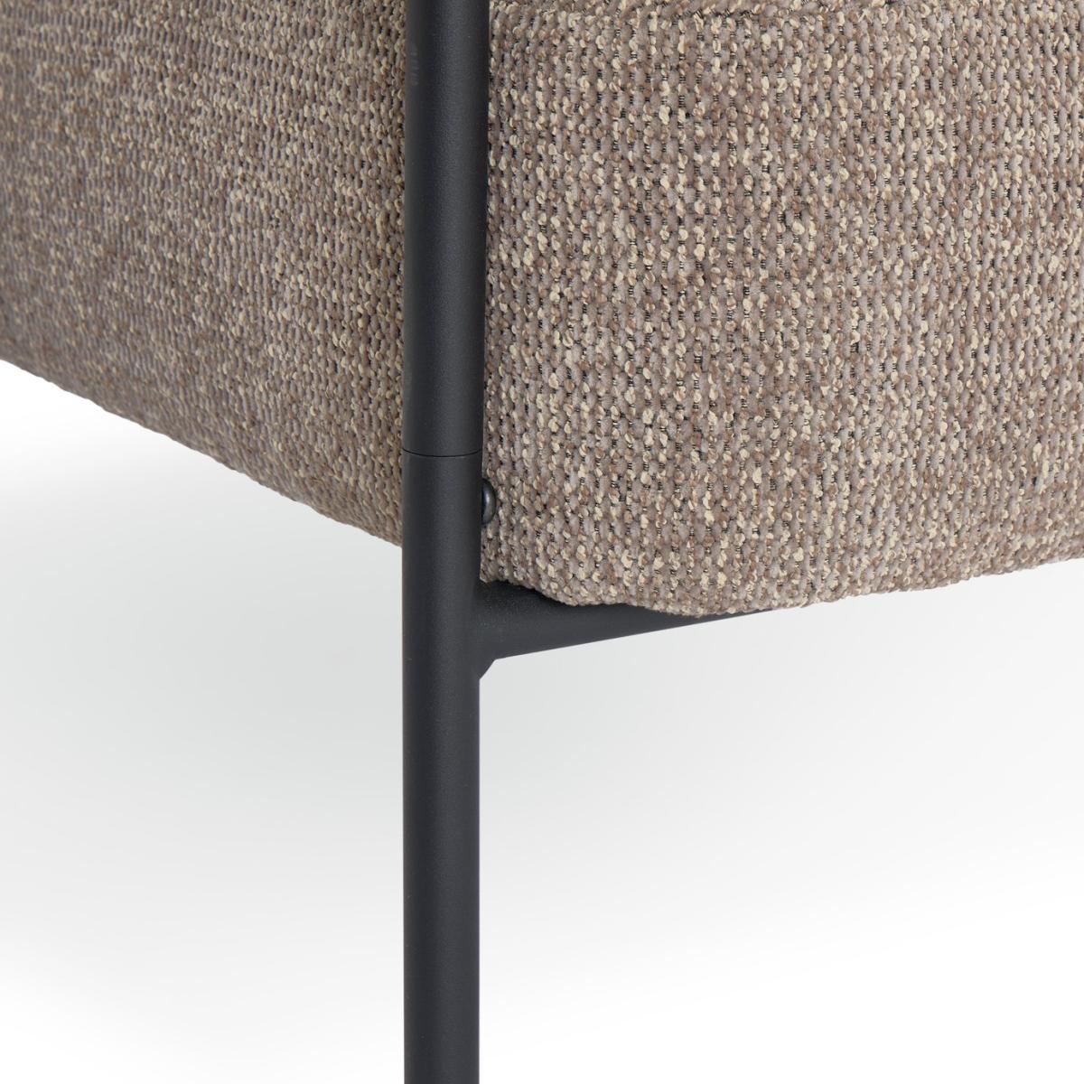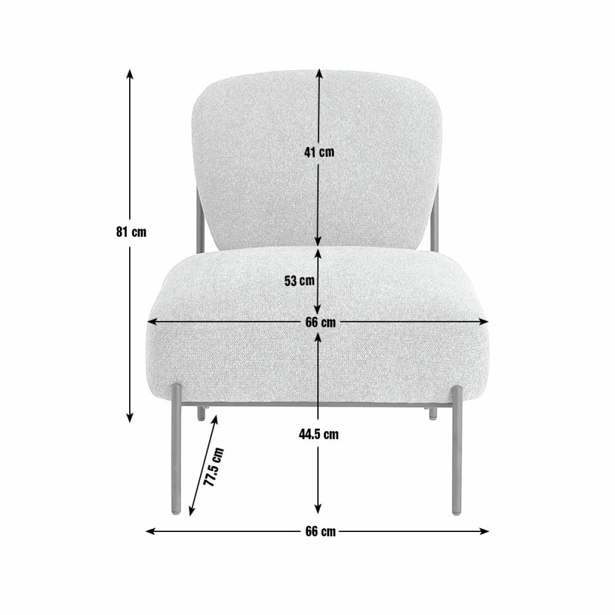 Rest a while, in style. Our Lark accent chair captures the mid-century mood with a generous serving of modern comfort. Upholstered in soft, neutral fabric with a laid-back texture. Black, powder-coated metal legs add a contemporary edge. Clean lines and subtle curves that'll sit beautifully in your favourite quiet corner. Timeless and easy going. Part of the Lark collection. Material: Made from 100% polyester. Black steel feet. Fixed seat with pocket sprung foam filling. Fixed cushion(s) with pocket sprung foam filling. Dimensions: Size H81, W66, D77.5cm. Floor to seat height: 44.5cm. Depth of seat: 53cm. Height of seat back: 41cm. Weight: 15.8kg. Packaged dimensions: Package size H75, W67.5, D42cm. General information: Dust or wipe with a damp cloth only. Self-assembly. Maximum individual user weight 110kg. Manufacturer's 1 year guarantee.