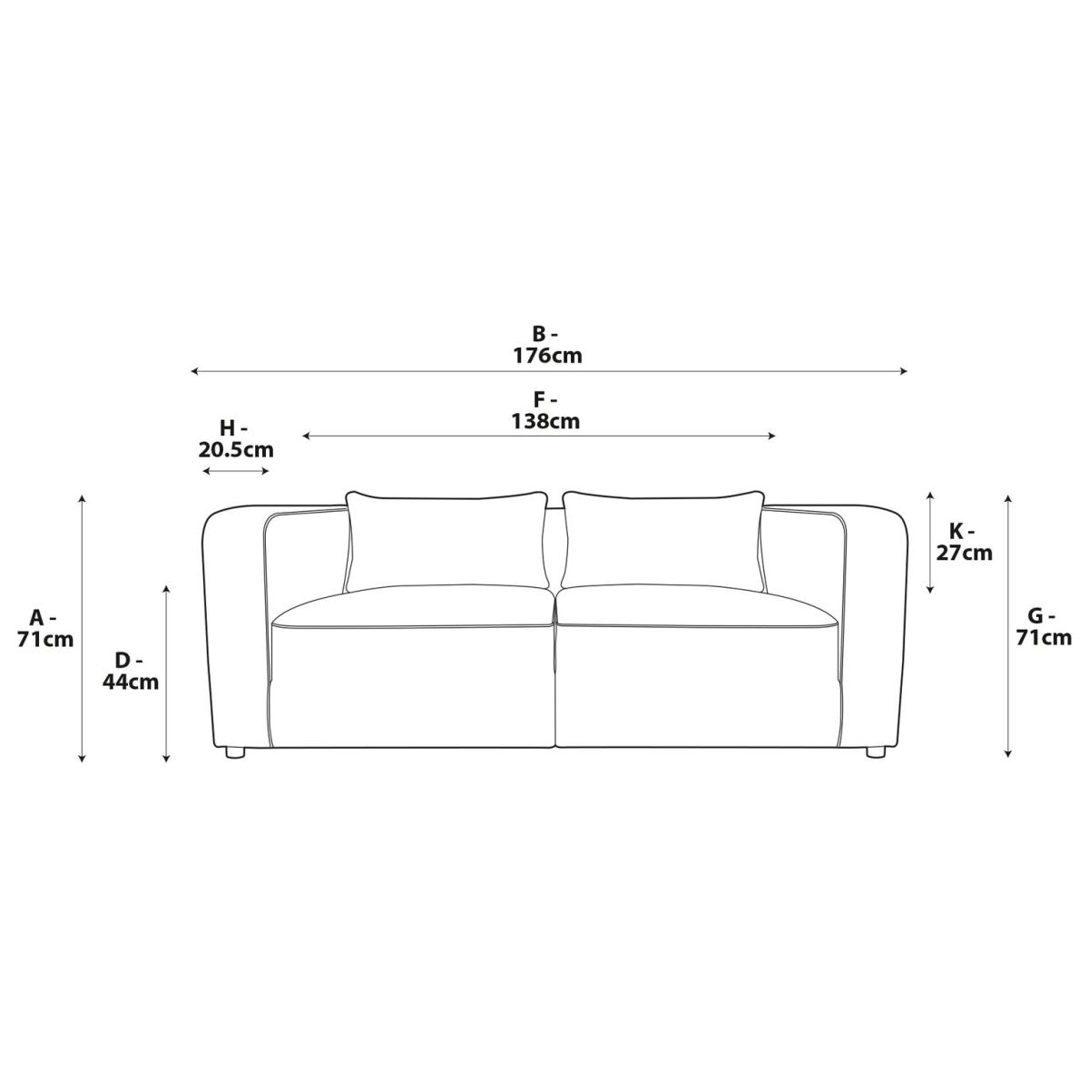 When it's made for you, you know you'll love it. The Lars 2-seater sofa is so easy to live with. Comfortably contemporary with minimal lines and fine attention to detail. Like top stitched seams and turned ash legs. Upholstered in Aquaclean Chenille, the Lars combines a soft feel with easy clean durability. Designed to be modular if required, Lars is a flexible, family-friendly Scandi inspired design with space efficiency at its core. Relaxing and generously padded the Lars's fixed seat and cushioned back use a high-density foam core wrapped in a softer foam layer to create the perfect balance of support, durability and recovery. While the removable oblong lumber cushions add an additional layer of comfort and support. Hand made to order in the UK, the Lars uses quality materials and traditional techniques for furniture that's unique to you. Available in a choice of sizes and fabrics including Aquaclean technology protection built into the yarn, which is easy to clean with just water. Part of the Lars collection. Material: Made from 100% polyester. Wooden feet - ash. Fixed seats with foam filling. Reversible cushion(s) with fibre filling. Dimensions: Size H71, W176, D97cm. Floor to seat height: 44cm. Depth of seat: 69cm. Height of seat back: 27cm. Width of seating area between arms: 138cm. Height of arm rest: 71cm. Weight: 51kg. Packaged dimensions: Package size H72, W181, D102cm. General information: We do more than deliver your product, we unpack, set it up and take away the packaging. Manufactured in the UK using components sourced globally. Professional clean only. Plump cushions regularly to maintain shape. - just add feet. Maximum individual user weight: 110kg. Manufacturer's 15 year frame guarantee.