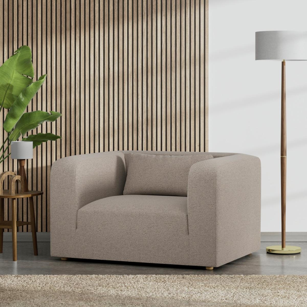 When it's made for you, you know you'll love it. The Lars cuddle seat is so easy to live with. Comfortably contemporary with minimal lines and fine attention to detail. Like top stitched seams and turned ash legs. Upholstered in a Textured Weave, the Lars takes on a soft, tactile feel. Designed to be modular if required, Lars is a flexible, family-friendly Scandi inspired design with space efficiency at its core. Relaxing and generously padded the Lars's fixed seat and cushioned back use a high-density foam core wrapped in a softer foam layer to create the perfect balance of support, durability and recovery. While the removable oblong lumber cushions add an additional layer of comfort and support. Handmade to order in the UK. The Lars uses quality materials and traditional techniques for furniture that's unique to you. Available in a choice of sizes and fabrics including Aquaclean technology protection built into the yarn, which is easy to clean with just water. Part of the Lars collection. Material: Made from 100% polyester. Wooden feet. Fixed seat with foam filling. Reversible cushion(s) with fibre filling. Dimensions: Size H71, W122.5, D97cm. Floor to seat height: 44cm. Depth of seat: 69cm. Height of seat back: 27cm. Width of seating area between arms: 84cm. Height of ARM rest: 71cm. Weight: 39kg. Packaged dimensions: Package size H72, W127.5, D102cm. General information: We do more than deliver your product, we unpack, set it up and take away the packaging. Manufactured in the UK using components sourced globally. Professional clean only. Plump cushions regularly to maintain shape. - just add feet. Maximum individual user weight 110kg. Manufacturer's 15 year frame guarantee.