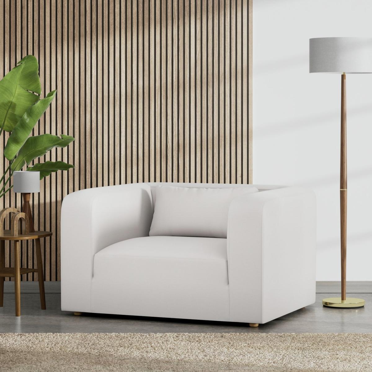 When it's made for you, you know you'll love it. The Lars cuddle seat is so easy to live with. Comfortably contemporary with minimal lines and fine attention to detail. Like top stitched seams and turned ash legs. Upholstered in Aquaclean Chenille, the Lars combines a soft feel with easy clean durability. Designed to be modular if required, Lars is a flexible, family-friendly Scandi inspired design with space efficiency at its core. Relaxing and generously padded the Lars's fixed seat and cushioned back use a high-density foam core wrapped in a softer foam layer to create the perfect balance of support, durability and recovery. While the removable oblong lumber cushions add an additional layer of comfort and support. Handmade to order in the UK. The Lars uses quality materials and traditional techniques for furniture that's unique to you. Available in a choice of sizes and fabrics including Aquaclean technology protection built into the yarn, which is easy to clean with just water. Part of the Lars collection. Material: Made from 100% polyester. Wooden feet. Fixed seat with foam filling. Reversible cushion(s) with fibre filling. Dimensions: Size H71, W122.5, D97cm. Floor to seat height: 44cm. Depth of seat: 69cm. Height of seat back: 27cm. Width of seating area between arms: 84cm. Height of ARM rest: 71cm. Weight: 39kg. Packaged dimensions: Package size H72, W127.5, D102cm. General information: We do more than deliver your product, we unpack, set it up and take away the packaging. Manufactured in the UK using components sourced globally. Professional clean only. Plump cushions regularly to maintain shape. - just add feet. Maximum individual user weight 110kg. Manufacturer's 15 year frame guarantee.