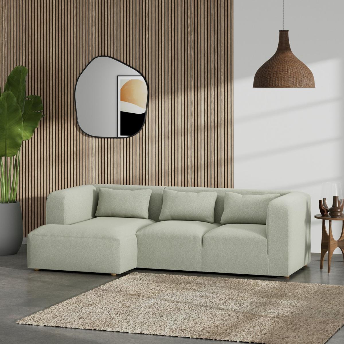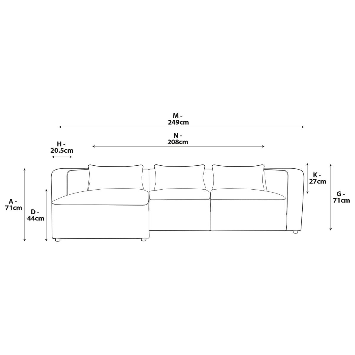 When it's made for you, you know you'll love it. The Lars 4-seater left corner chaise is so easy to live with. Comfortably contemporary with minimal lines and fine attention to detail. Like top stitched seams and turned ash legs. Upholstered in a modern Flat Weave, the Lars takes on a smooth tonal look. Designed to be modular if required, Lars is a flexible, family-friendly Scandi inspired design with space efficiency at its core. Relaxing and generously padded the Lars's fixed seat and cushioned back use a high-density foam core wrapped in a softer foam layer to create the perfect balance of support, durability and recovery. While the removable oblong lumber cushions add an additional layer of comfort and support. Hand made to order in the UK, the Lars uses quality materials and traditional techniques for furniture that's unique to you. Available in a choice of sizes and fabrics including Aquaclean technology protection built into the yarn, which is easy to clean with just water. Part of the Lars collection. Left hand corner. Material: Made from 100% polyester. Wooden feet. Firm seat cushions. Fixed seats with foam filling. Reversible cushion(s) with fibre filling. Dimensions: Size H71, longer width 249, shorter width 91,. Floor to seat height: 44cm. Depth of seat: 69cm. Height of seat back: 27cm. Shorter seating area width between arms: 89cm. Longer seating area width between arms: 208cm. Height of arm rest: 71cm. Weight: 90kg. Packaged dimensions: Package size H72, W163, D102cm. Second package size H72, W96, D142cm. General information: We do more than deliver your product, we unpack, set it up and take away the packaging. Manufactured in the UK using components sourced globally. Professional clean only. Plump cushions regularly to maintain shape. Minimal assembly - just add feet. Maximum individual user weight: 110kg. Manufacturer's 15 year frame guarantee.