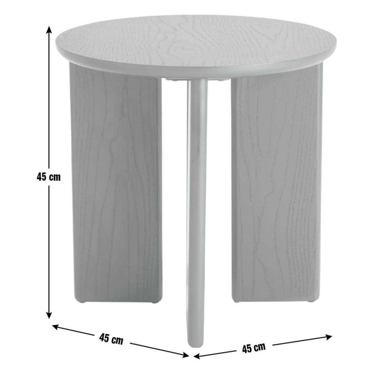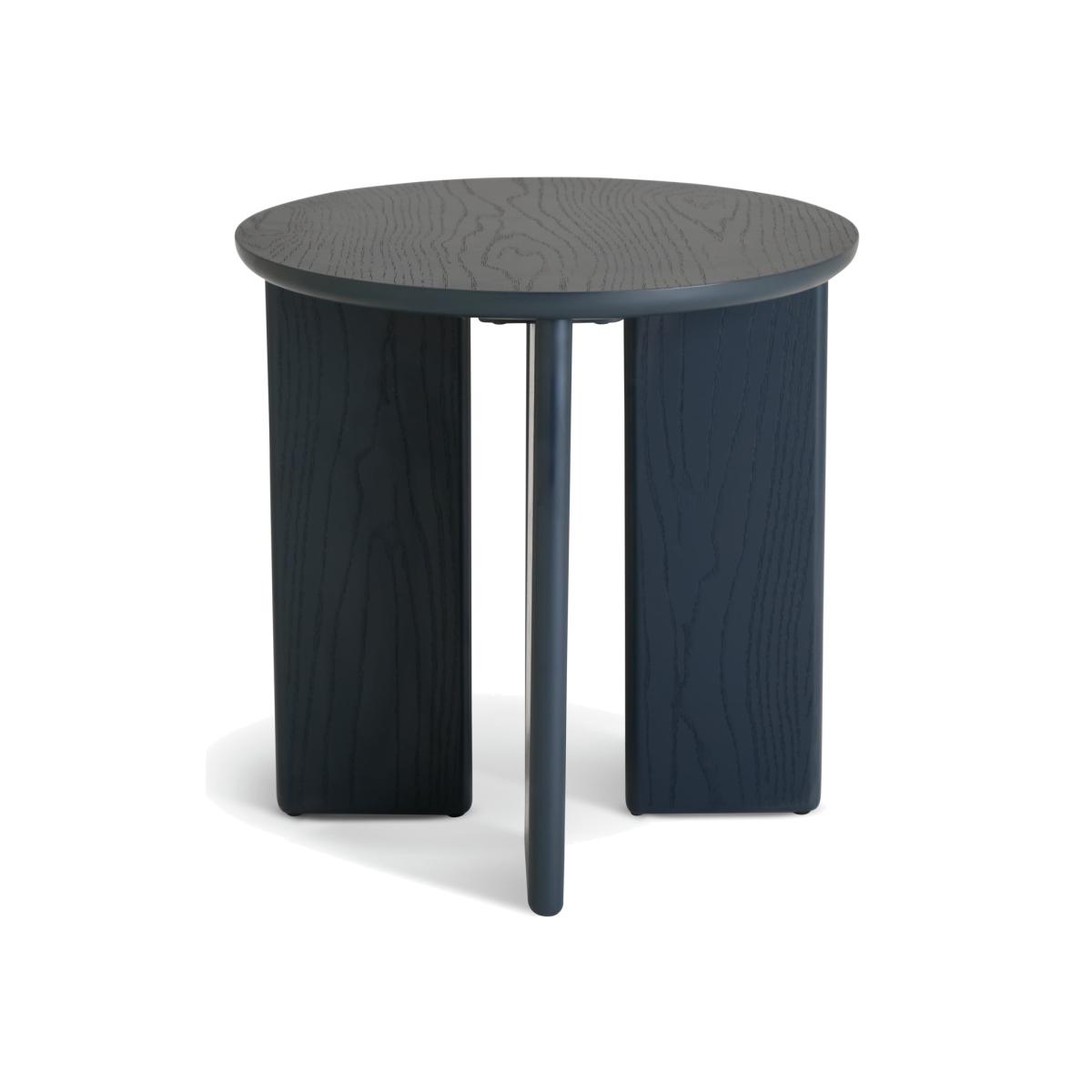 A minimalist, solid wood side table loved by designers. Lason is a mix of round and straight shapes. Flat panel legs support a circular surface which exposes the grain through the special blue toned stain. Contemporary luxe, it adds an unusual pop of personality to your home. Part of the Lason collection. Size H 45, W 45, D 45cm. Made from MDF with a wooden finish. Weight 9kg. Self-assembly - 1 person recommended. Maximum load weight 10kg. Package Dimensions: Package 1 dimensions: H16, W48, D45cm. Package 1 weight: 9kg. General information: Manufacturer's 1 year guarantee. FSC certified meaning the materials used for this product are responsibly sourced.