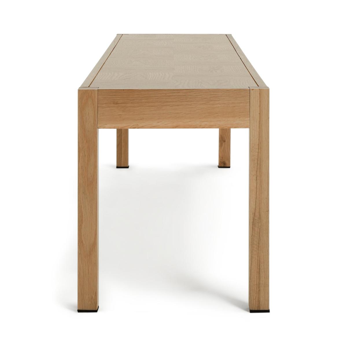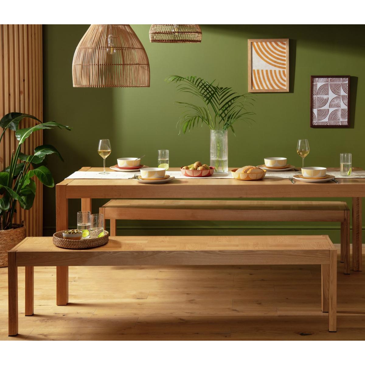 I love this piece because of its clean, straightforward design and the natural finish that highlights the beauty of solid wood. It works particularly well in both contemporary and Scandi-inspired interiors, where its simplicity complements minimalistic aesthetics. For styling, consider pairing it with a variety of tableware for casual gatherings or layering with textured runners and cushions if you’re creating a more cosy dining area. Its understated look also makes it versatile enough to serve as an additional seating option in a hallway or open-plan living space. Keep accessories minimal to let the natural grain shine, and add some modern chairs or a bench cushion for extra comfort and personality.