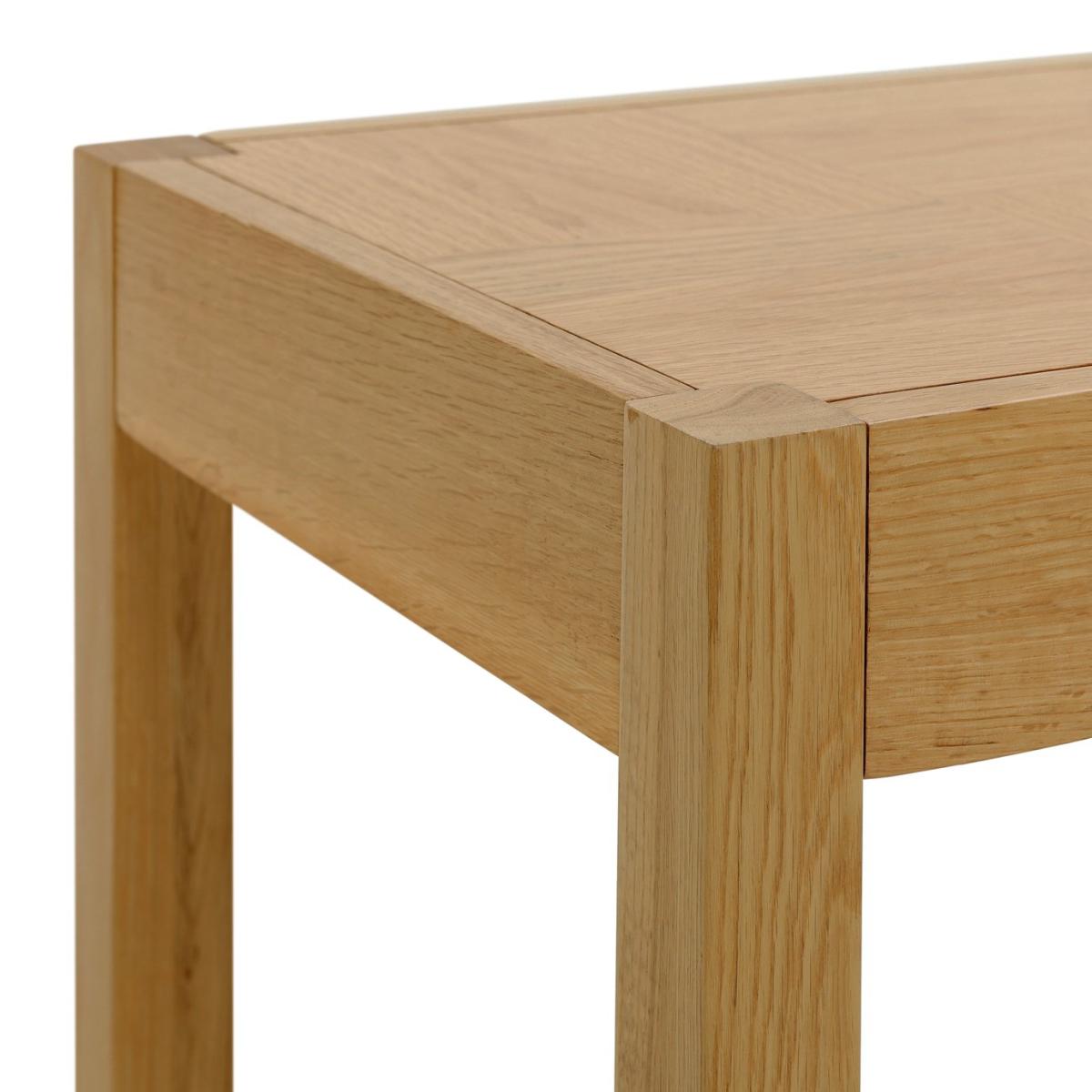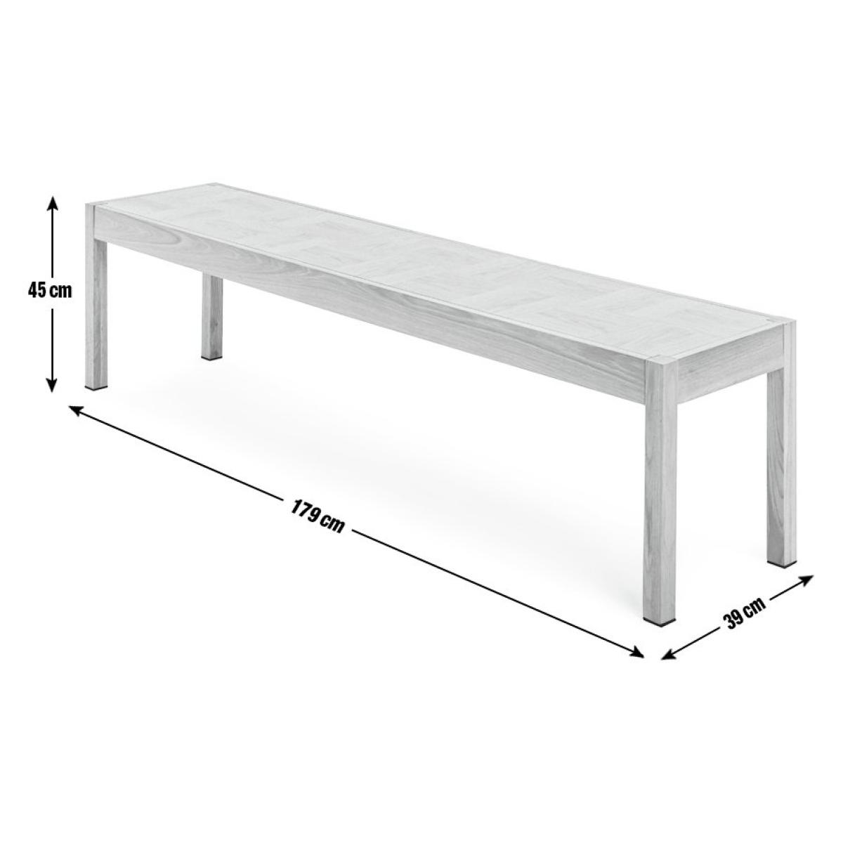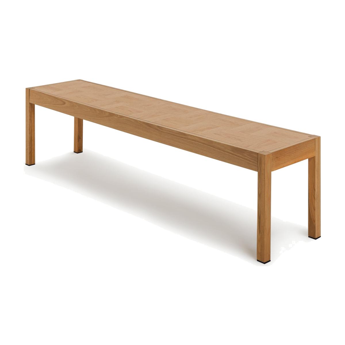 Naturally inviting. The rustic beauty of solid oak shines through this handsome wooden bench. And have you noticed the traditional parquet pattern? Pure, timeless elegance. Ideal to use at the table for formal dining and a great choice for families or friendly gatherings. This bench easily seats 3. So relax and take a pew.