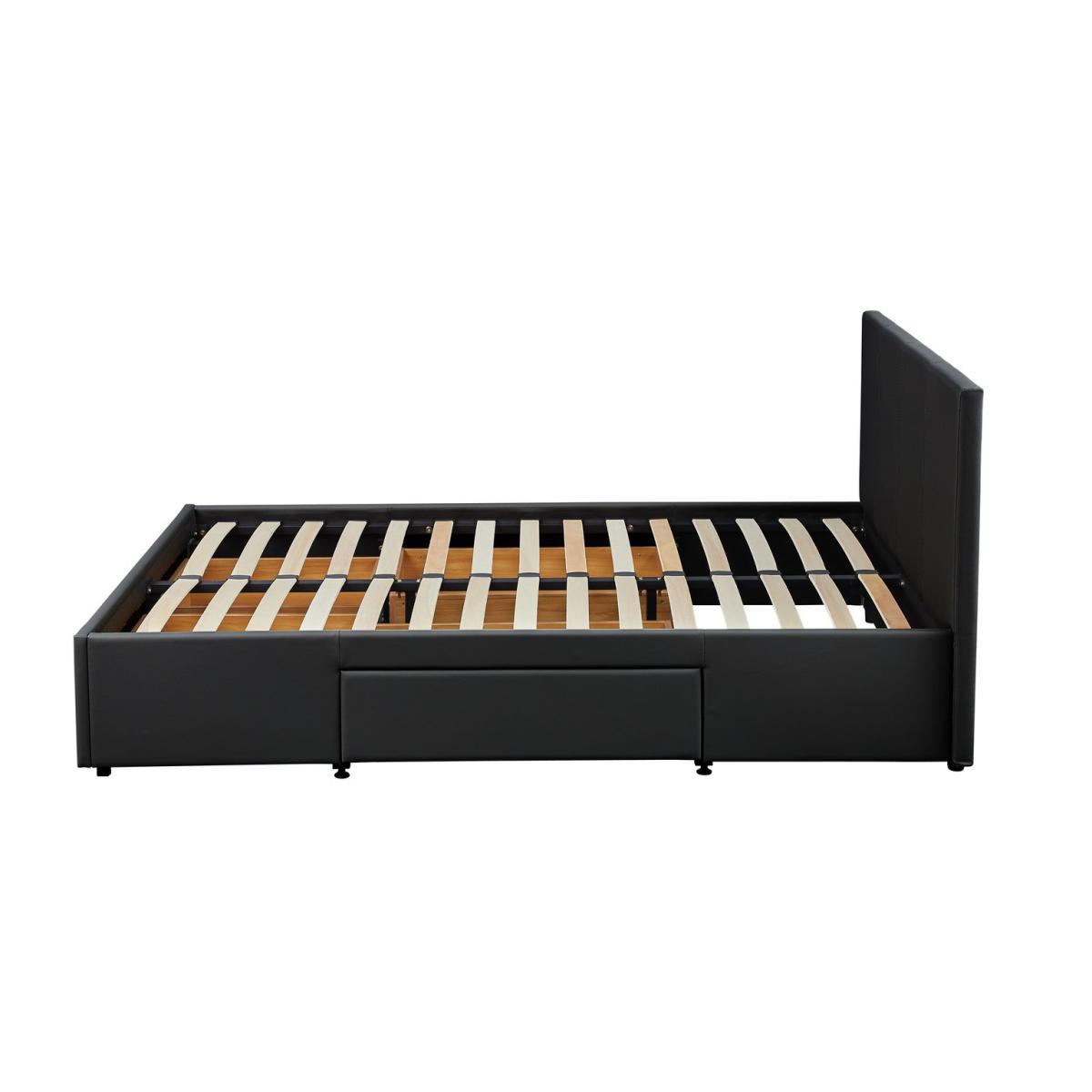 All comfort, no clutter. Our Lavendon 4ft6 bed frame makes the most of your space. With a sleek faux leather design and handy under-bed storage, it's stylishly practical. Sprung wooden slats offer the perfect foundation for a comfy mattress. And with 4 drawers, you've got loads of room for storing clothes, fresh bedcovers, books, and shoes. Keep your bedroom tidy as can be with Lavendon. Neat. Parts included can be found in the headboard.