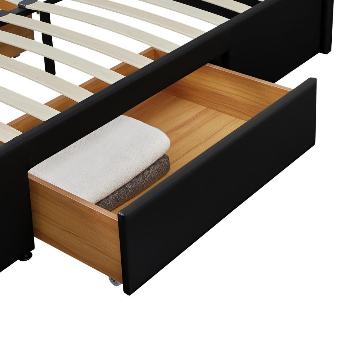 This bed frame is a great choice for those looking to maximise storage without sacrificing style. The black finish offers a sleek, contemporary look that works well in modern or minimalist interiors, while the double drawers provide practical storage for bedding, clothes, or other essentials. It's versatile enough to sit comfortably in both neutral-toned schemes and more vibrant, eclectic spaces. Styling tips include pairing it with crisp, linen bedding and simple, understated accessories for a clean look, or adding textured throws and cushions to soften the black for a cosier feel. Since the bed’s design is quite streamlined, it lends itself well to layered lighting and statement accents around the room to personalise the space.