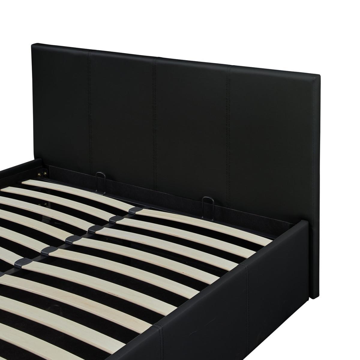 All comfort, no clutter. This sleek faux leather ottoman double bed makes the most of a smaller space. With its hidden underbed storage it's a smart way to sleep and keep your stuff tidy. Sprung wooden slats add comfort to your mattress while the padded headboard is ideal for readers and breakfast in bedders. In fact, it's everything you want from a bed, and then some. Parts included can be found in the headboard.