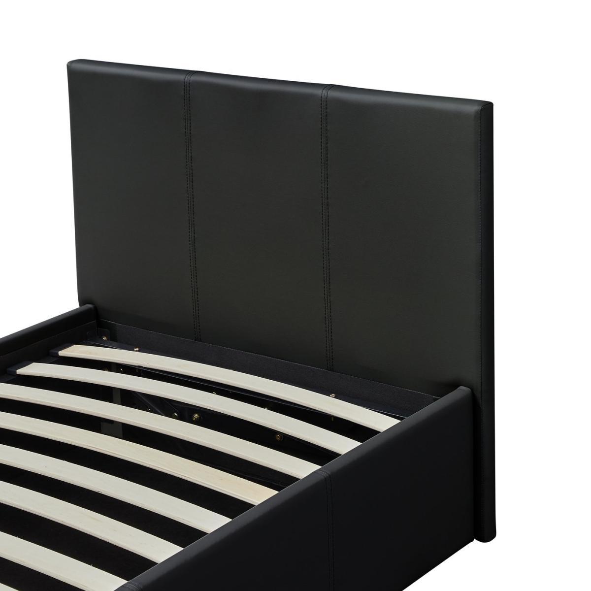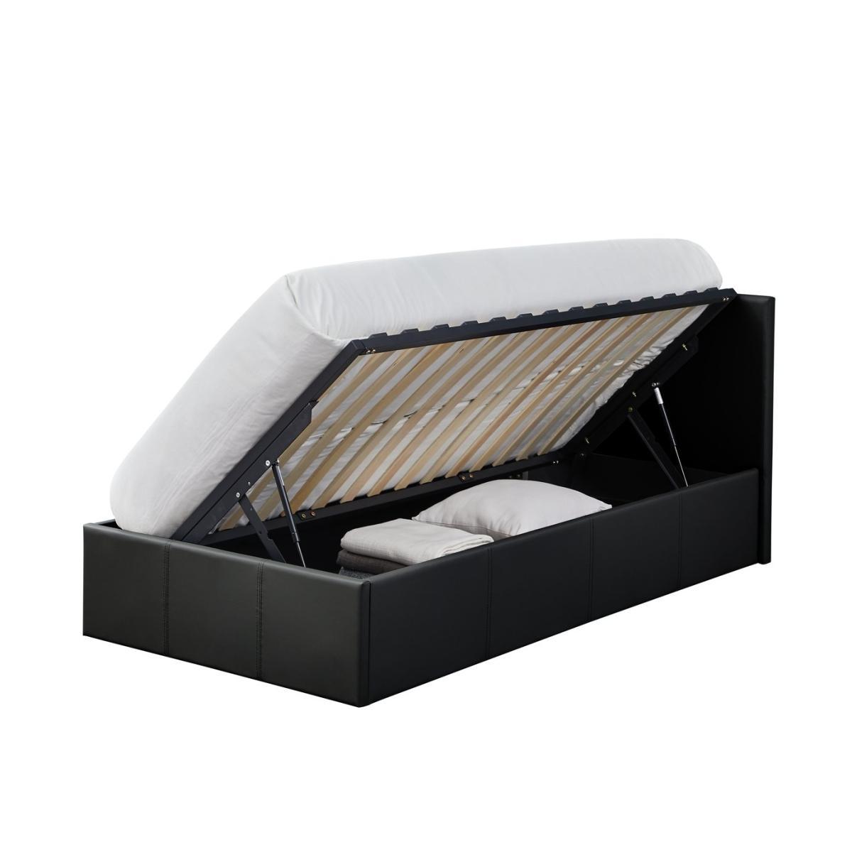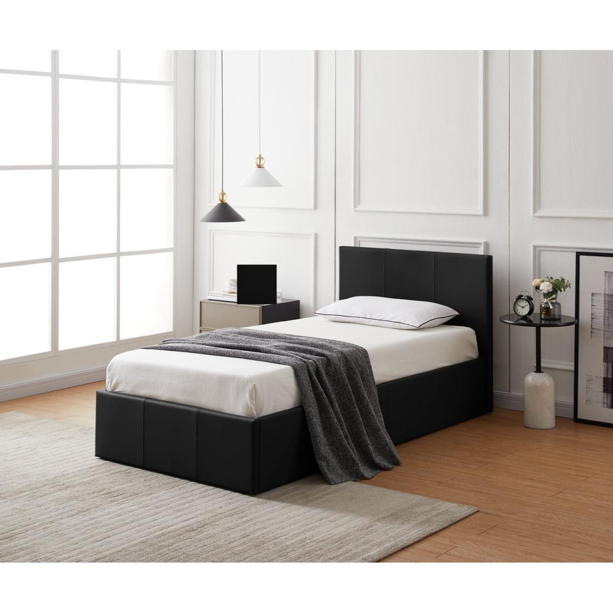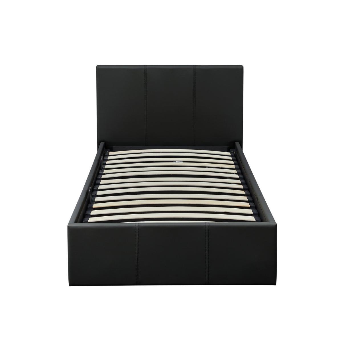 All comfort, no clutter. Our Lavendon 3ft single bed frame makes the most of a smaller space. With a sleek faux leather design and handy under-bed storage, it's stylishly practical. Time for a tidy? Lift up the side-opening ottoman to reveal ample space for clothes and bedlinen. Assemble it for access from the left or right, whatever works best for you. Sprung wooden slats offer the perfect foundation for your mattress, so snuggle in. Get ready for a great night's sleep with Lavendon. Parts included can be found in the headboard.