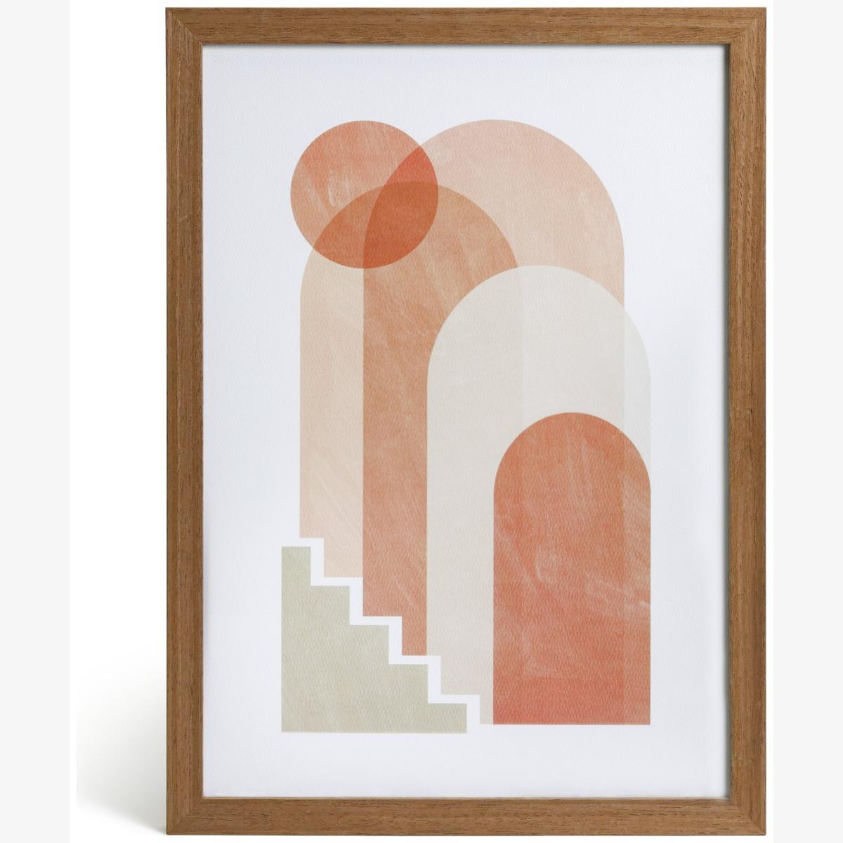 I love this layered print for its modern yet versatile aesthetic, making it a great statement piece in a variety of interiors. Its abstract design and warm earthy tones work particularly well in contemporary, minimalist, or Scandinavian styled spaces, but it can also add a subtle touch of colour to more eclectic or boho environments. When styling, consider pairing it with neutral furnishings to let the artwork stand out, or create a colour-coordinated gallery wall for a more curated look. It's also practical to place it above a sofa or a sideboard, where its balanced composition can anchor a room without overwhelming the space.