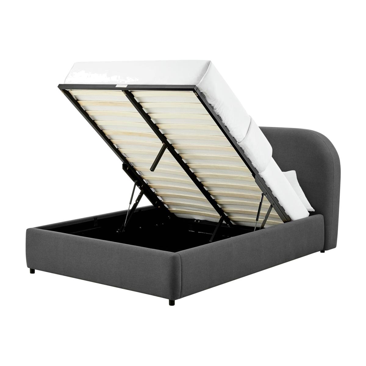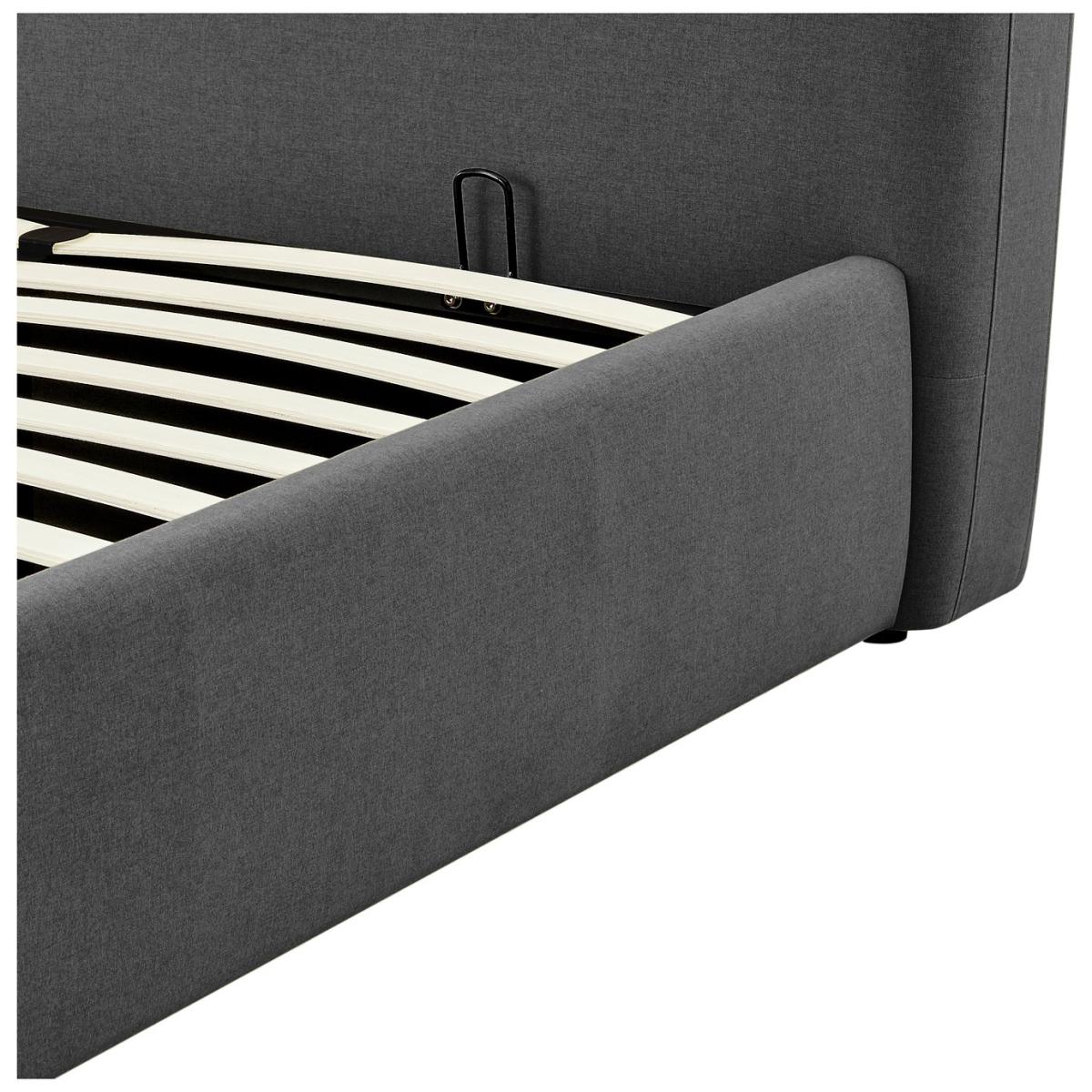 Big is beautiful with Layla, our double ottoman bed frame. Curvaceous and chunky, the upholstered headboard sits towering over the larger than life frame. Sit back and enjoy the softness of the premium weave charcoal fabric. Good looks come with great storage. Just lift the end to discover room for blankets, linens and bulky jumpers. Pocket sprung, open coil or memory foam? Choose a mattress from our selection to pop on the sprung wooden slats and sleep soundly. Give your bedding a refresh too, take a look at our duvet sets. Part of the Layla collection. Fabric frame. Base with sprung wooden slats. End lift. Ottoman: end opening. Storage capacity: 524 litres. Size W155, L228, H105cm. Height to top of siderail 34cm. 4cm clearance between floor and underside of bed. Weight 59.5kg. Total maximum user weight 220kg. Packed flat - 2 people recommended. Package Dimensions: Package 1 dimensions: H199, W33, D30cm. Package 1 weight: 39.2kg. Package 2 dimensions: H163, W113, D29cm. Package 2 weight: 30.2kg. FSC certified meaning the materials used for this product are responsibly sourced. General Information: We are excited to be welcoming some of our favourite HOME products into the Habitat range. Your product may arrive in Habitat or HOME packaging. Manufacturer's 1 year guarantee.