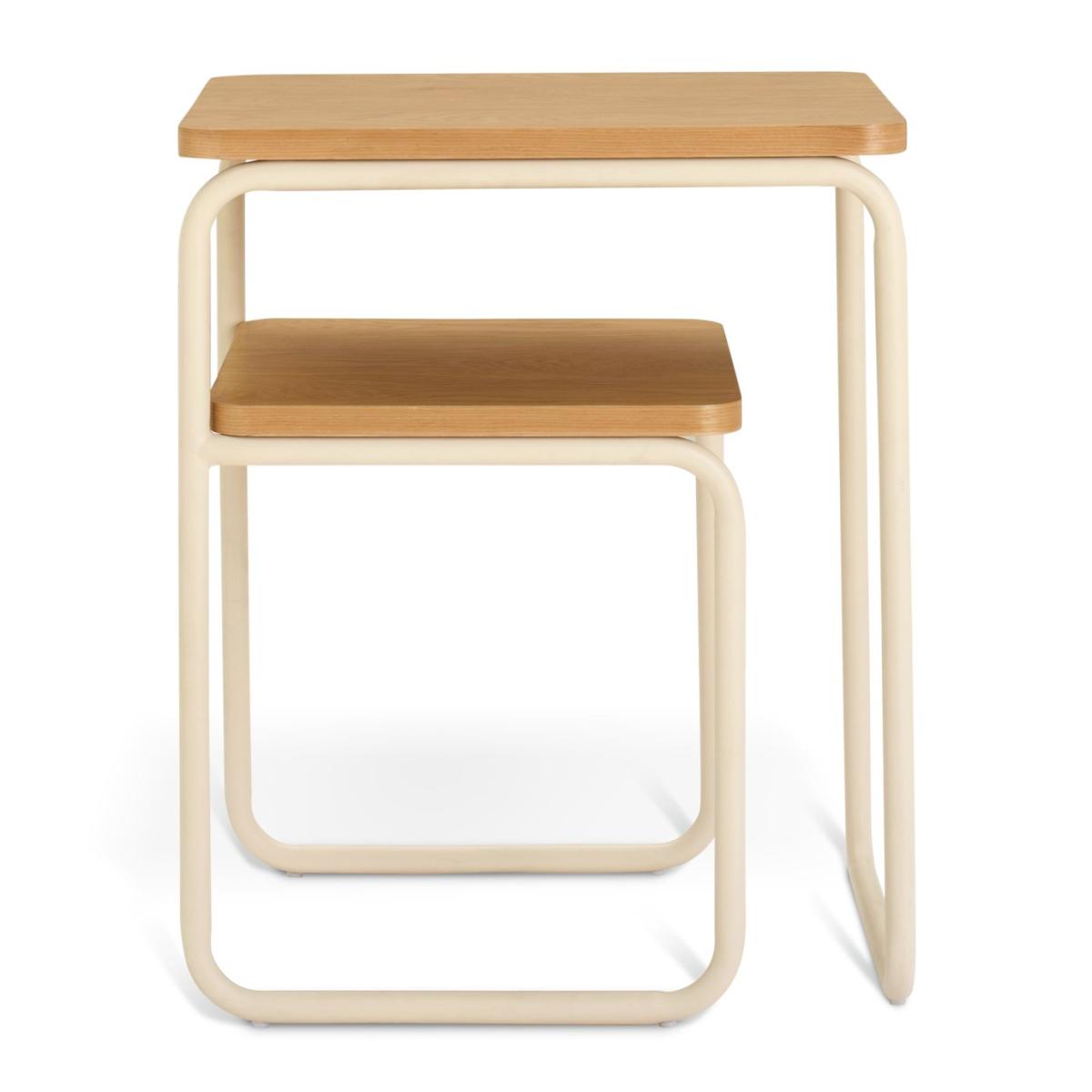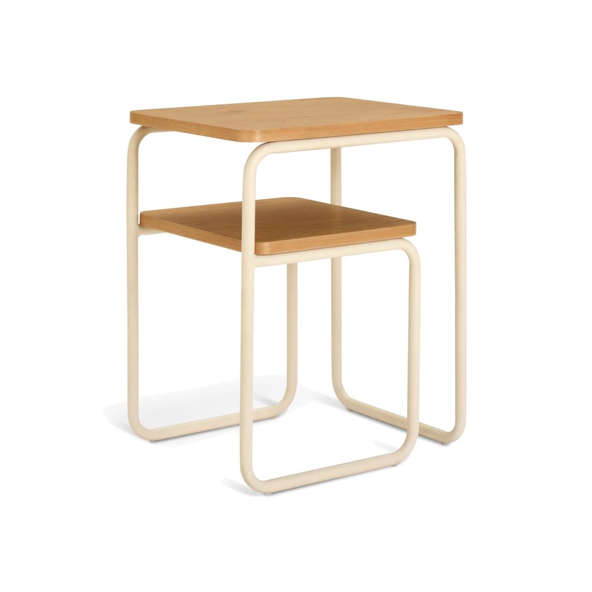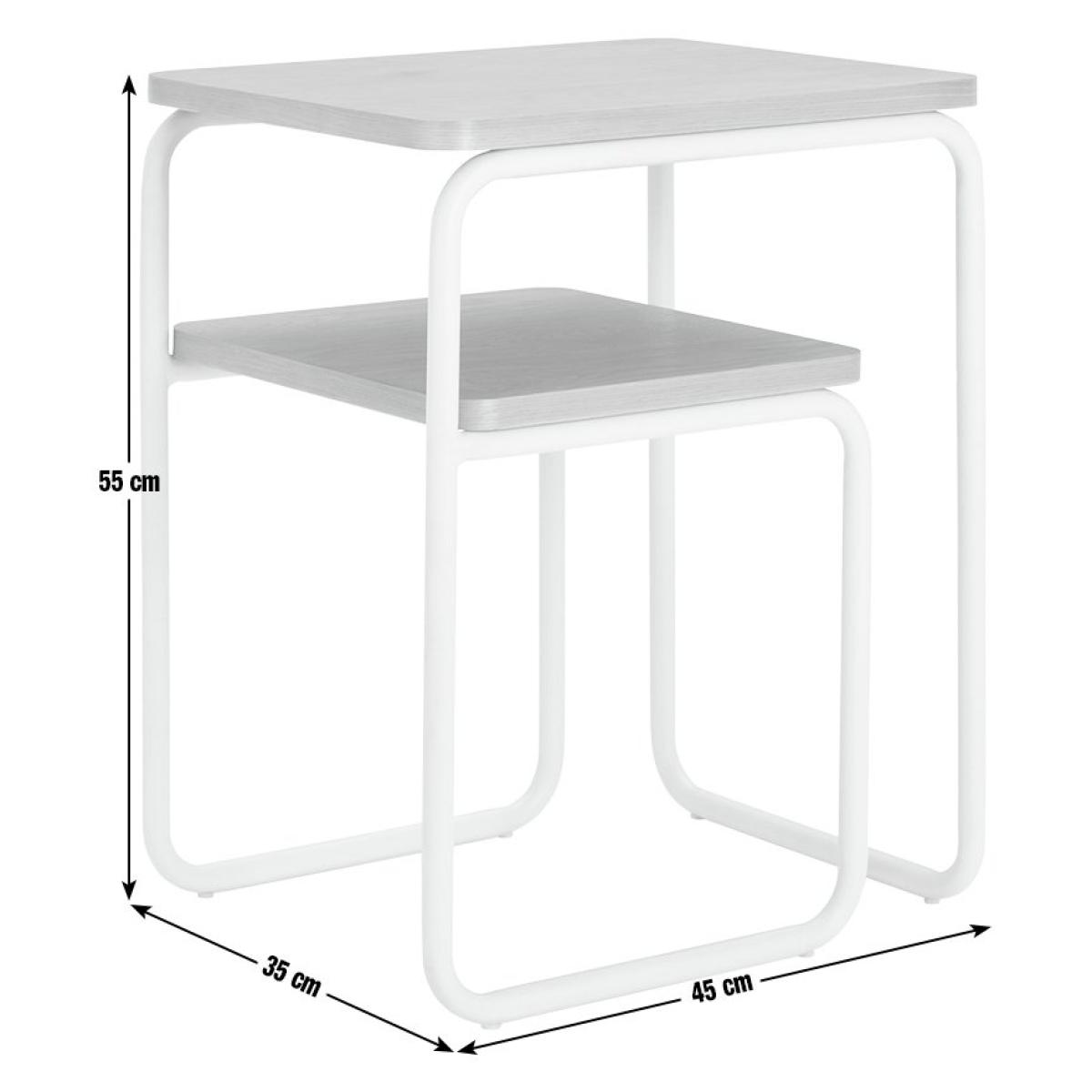 Tough stuff. The perfect bedside table for the kids room. Made from strong MDF and robust but lightweight tubular metal with rounded corners to help avoid bumps and bruises during play. With an easy clean surface for a lamp, drink and alarm clock and an undershelf for books, tissues or toys. Plenty of room beneath for a bedside bin too. Good night. Part of the Leigh collection. Made of metal and oak veneer. 1 fixed shelf. Fully assembled. Dimensions: Size H55, W45, D35cm. Weight 8kg. Package Dimensions: Package 1 dimensions: H62, W51, D41cm. Package 1 weight: 8kg. General information: FSC certified meaning the materials used for this product are responsibly sourced.