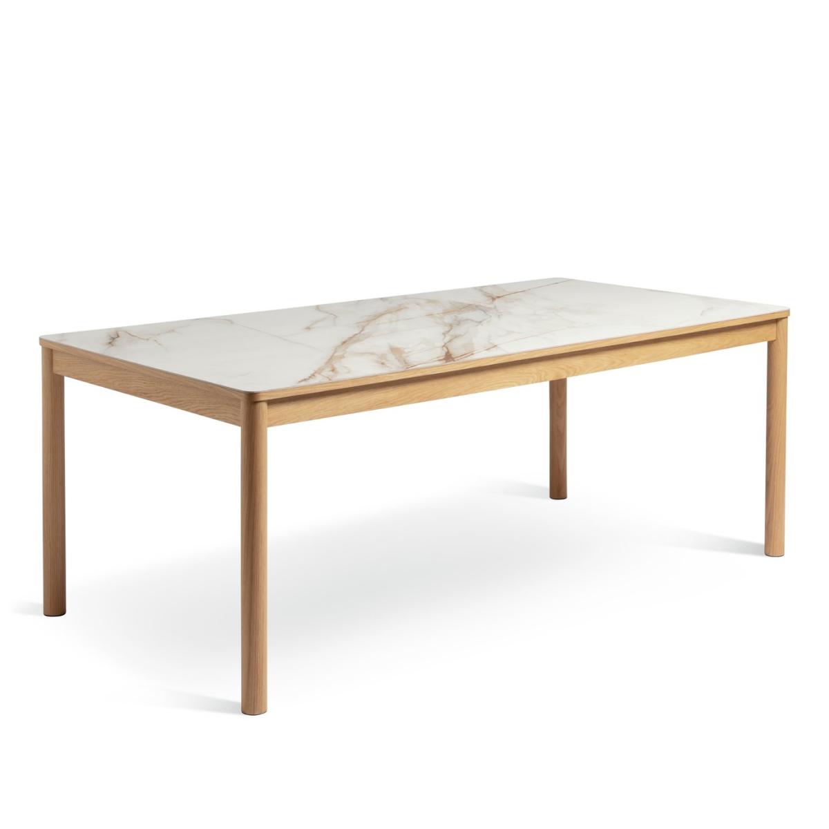 High shine. High style. Lex is a dining set with looks to thrill. The lacquered marble-like ceramic top contrasts beautifully with the oak veneer frame. Comes with 6 relaxing chairs. Comfy and contemporary, the naturalness of the oak meets the warmth of faux leather. Just the right size for fun dinner parties and family get-together. Lex, elegant, minimalist with Scandi style star quality. Part of the Lex collection. Table: Table size H75, W100, L200cm. Oak veneer table with oak veneer legs. Marble effect table top finish. Self-assembly - 2 people recommended. Chair: Includes 6 chairs. Size of each chair H75.5, W56, D54cm. Seat height 47cm. Solid wood frame with oak legs. Faux leather seat pad. Self-assembly. Maximum user weight per chair 110kg. Individual chair weight 13kg. Package Dimensions: Table package 1 size H13.5, W210.5, D109cm. Individual chair package size H75, W28, D58cm. General information: Manufacturer's 1 year guarantee. Wipe clean. By choosing FSC certified products, you are supporting responsible management of the world's forests.