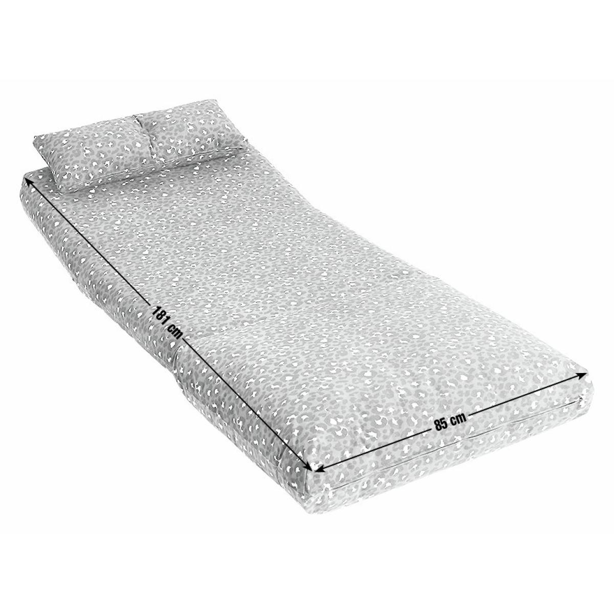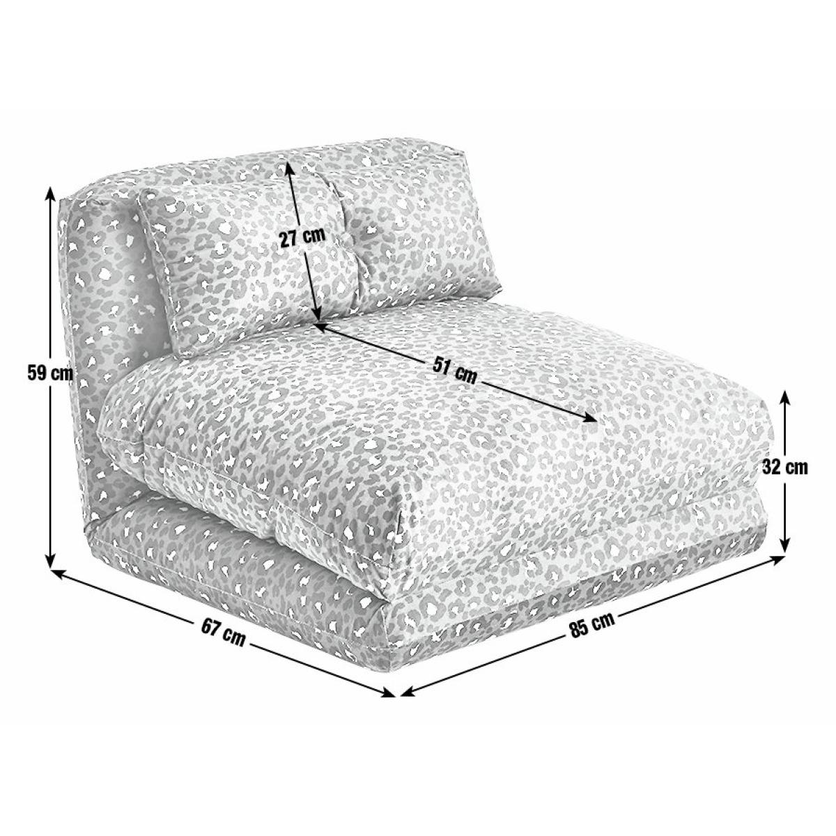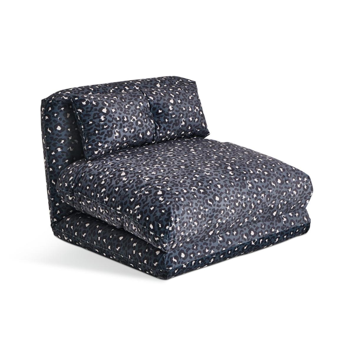 Want a chair? Need a bed? Have both with our smart chair bed. Ideal for spare rooms and sleepovers, this foam-filled convertible chair simply folds out to provide a comfy single bed. Upholstered in a dark blue and black leopard print, it looks good, too. A savvy, space saving solution. Part of the Lexi collection. Single. Materials: Made from 100% polyester. Fixed seat with foam fibre wrap filling. Removable cushion(s) with fibre filling. Dimensions: Size H59, W85,D67cm. Sleeping area W85, L181cm. Floor to seat height: 32cm. Depth of seat: 51cm. Height of seat back: 27. Weight 13kg. General information: Professional clean only. Suitable for occasional use. Plump cushions regularly to maintain shape. Fully assembled. Manufacturer's 2 year frame guarantee. Packaged dimensions: Package size H31, W85, D129cm.