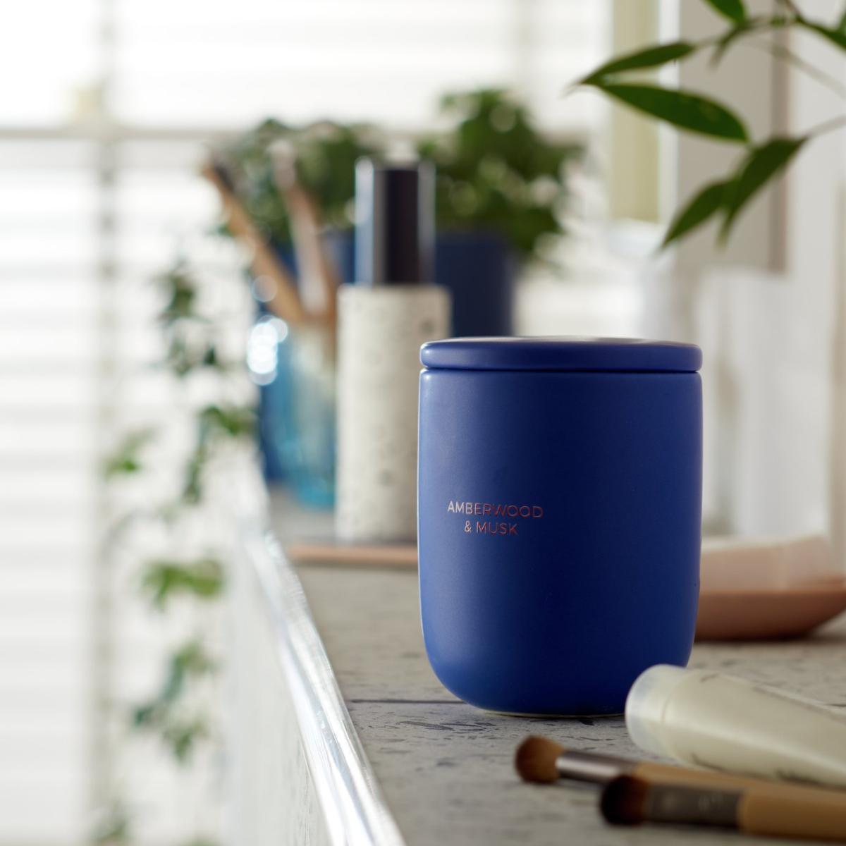 The Habitat candle in amberwood and musk is a stylish addition to both contemporary and minimalist interiors. Its bold, matte blue container adds a pop of colour while maintaining a sleek, understated look. I love styling this candle in modern living rooms, bathroom shelves, or on a centre table paired with natural materials like wood or stone to bring warmth. For practical tips, I suggest using it as a focal point on a tray alongside neutral decorative objects or greenery to create a sense of balance. Its rich scent profile makes it a versatile choice for creating cosy atmospheres without overpowering the space.