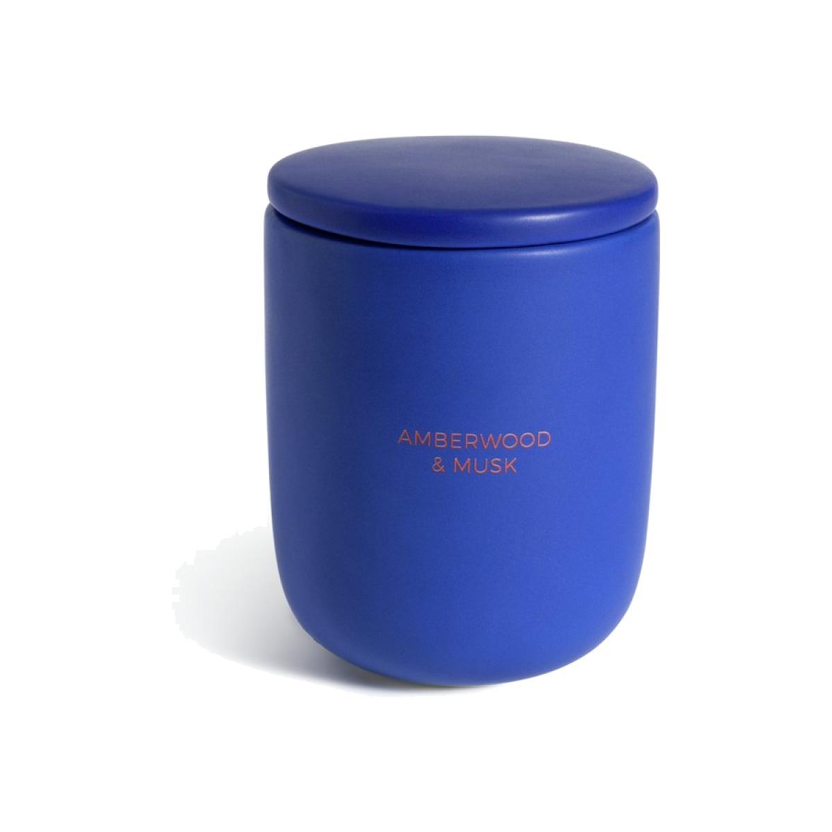 Strikingly handsome in royal blue. Our fragrant amberwood and musk candle sits in a boldly curved jar. Pop it on a shelf in the lounge or bathroom, it's an elegant statement piece. The scent is warm and woody with just a touch of fresh tobacco-leaf. There's a matching deep blue lid to prevent things getting smoky when you put out the flame. Kick back and relax.