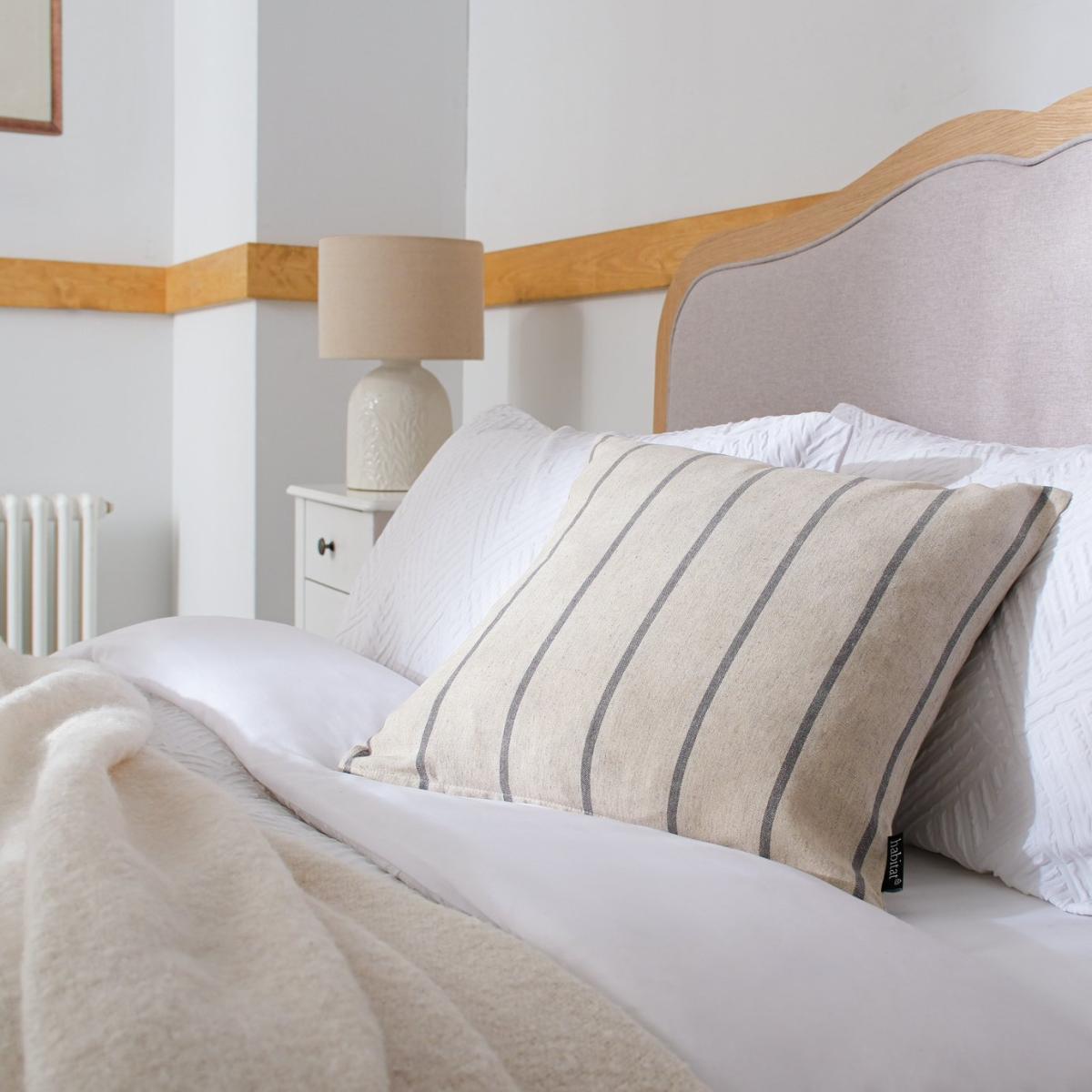I love this striped yarn-dye cushion for its clean, classic look that adds subtle interest without overwhelming a space. The neutral tones make it versatile, working well in both contemporary and traditional interiors. It’s a great choice for layering on sofas or armchairs to create a cosy yet stylish vibe. For styling tips, consider pairing it with textured throws or other cushions in complementary shades to add depth. Its size is perfect for a scatter cushion, and the stripe pattern lends a timeless appeal that can help tie together colour schemes in living rooms or bedrooms.