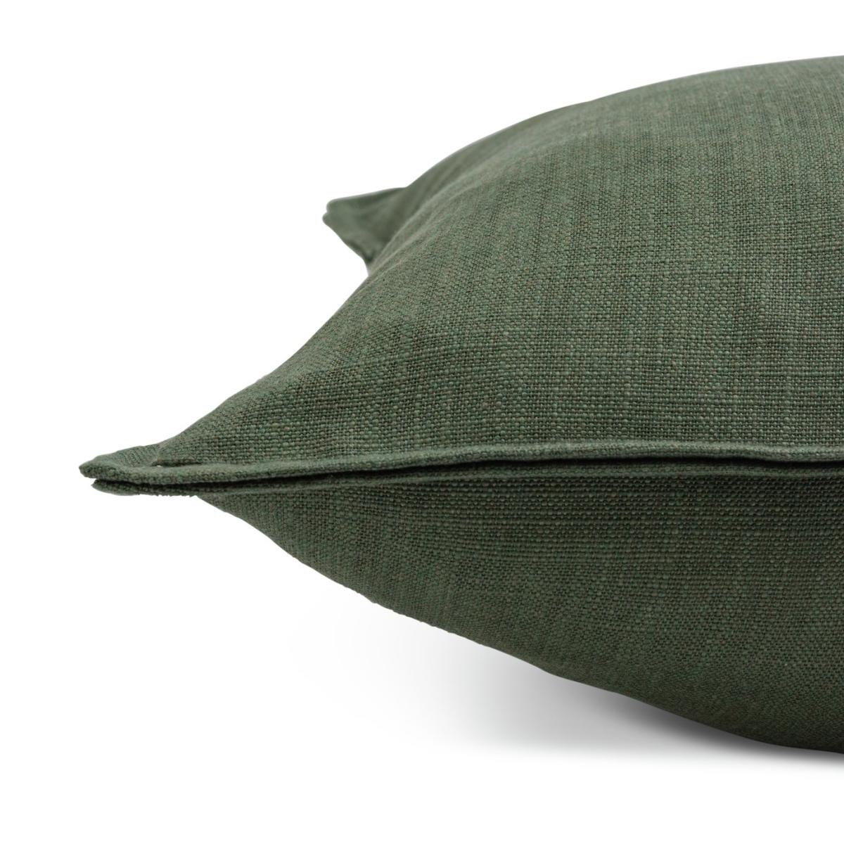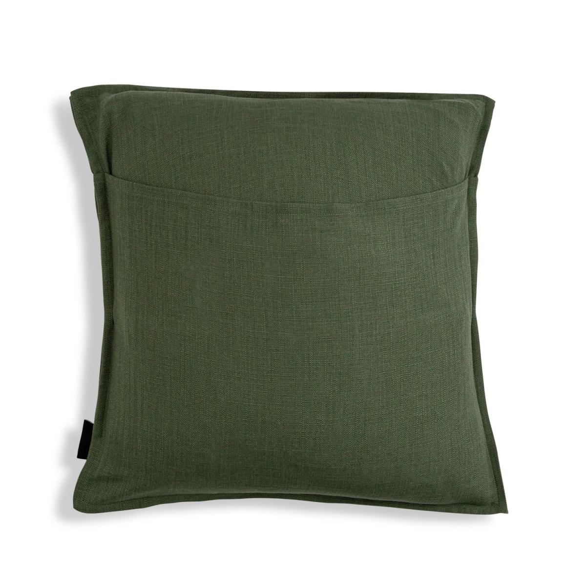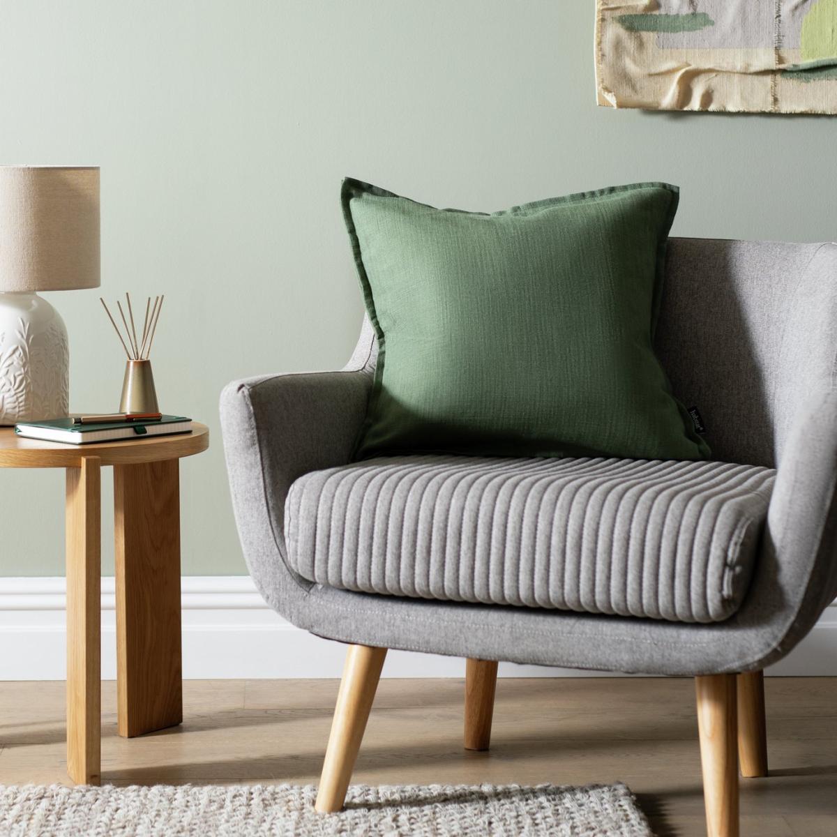 Embrace the cottage core aesthetic. With our woven verdant green cushion, featuring a flanged edge for a handcrafted feel. Textured and tactile, it brings an instant feel of relaxed nostalgia home. Plain recycled cushion with flange on all four sides along with flap. Fully sewn and stuffed cushion. Cover 100% cotton. Filling 100% filled cushions. Size L50, W50cm. This cover is machine washable.