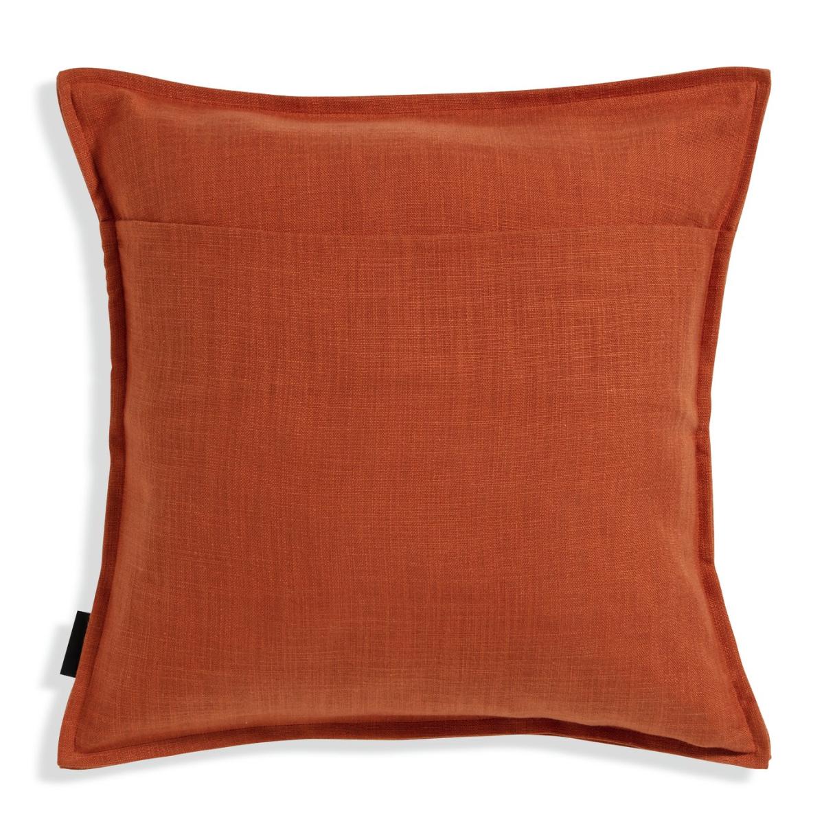 Made for cross-season, country styling. This textured, terracotta cushion features a 100% cotton cover. Warm and inviting, just plump and pop on the sofa. Plain recycled cushion with flange on all four sides along with flap. Fully sewn and stuffed cushion. Cover 100% Cotton. Filling 100% Recycled polyester. Size L50, W50cm. This cover is machine washable.